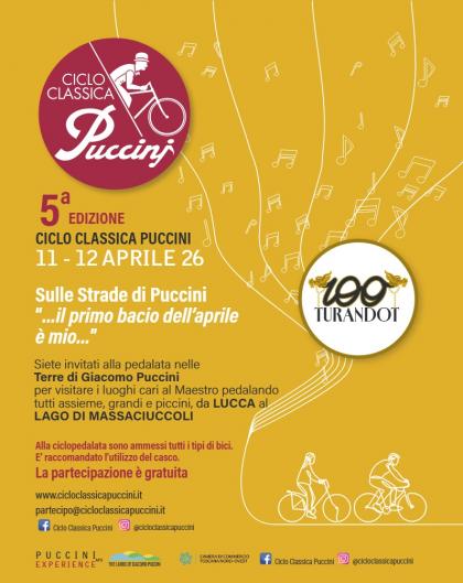 Domenica 12 aprile si svolgerà la quinta edizione della Ciclo Classica Puccini, l'evento non agonistico che unisce nella mobilità dolce, in bicicletta, i territori dove Giacomo Puccini visse e compose le sue opere immortali, attraverso la natura ed i paesaggi uniti dalla ciclopedonale Giacomo Puccini, fra Lucca e Massaciuccoli, lungo le sponde del Serchio e del lago caro al Maestro