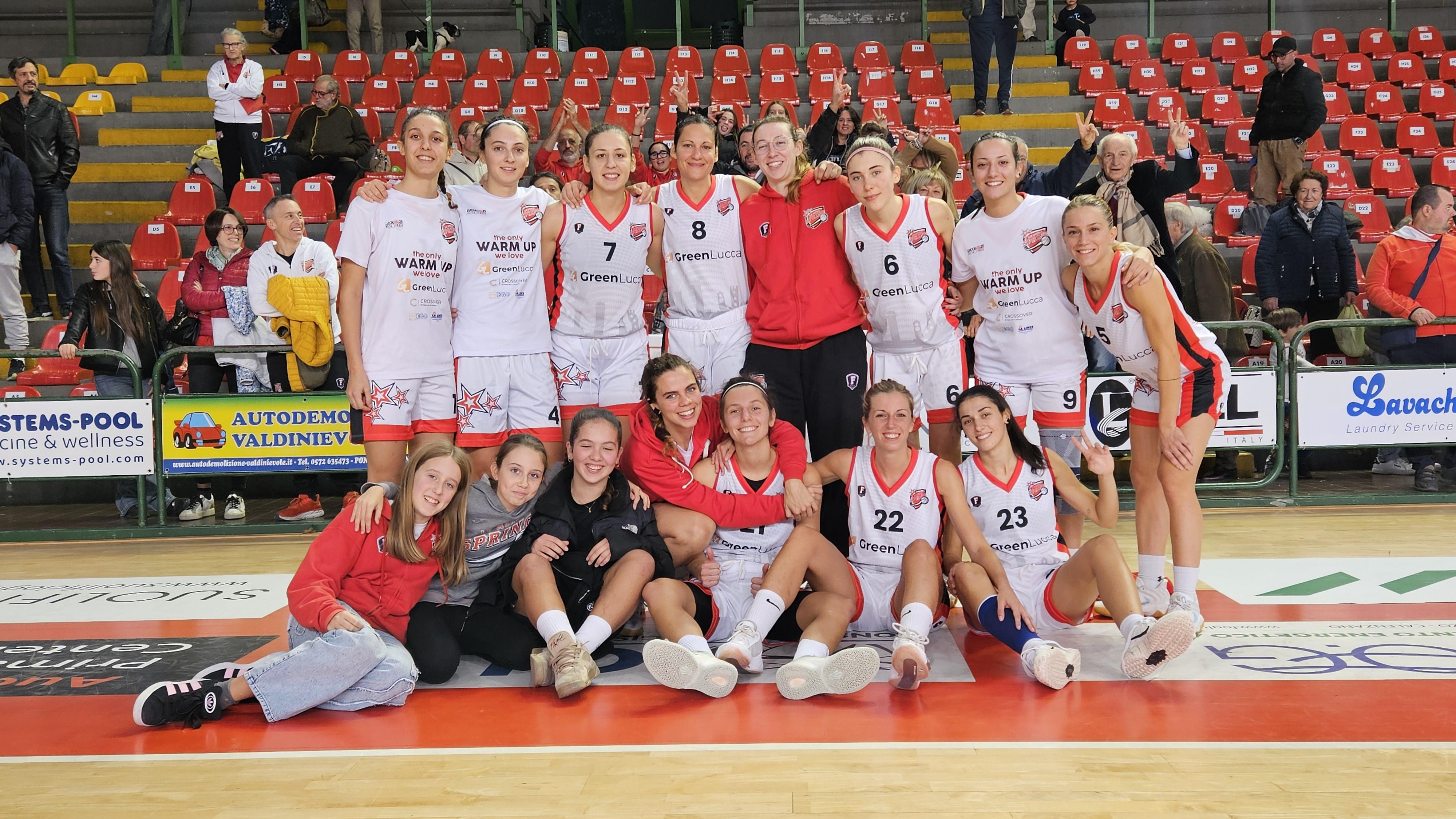 Il secondo quarto lo apre Dianda con due liberi a segno, ma anche con una tripla su assist di Ceccarini in contropiede (17-16). Dopo i liberi di Collodi (17-18), ancora una bomba stavolta di Ceccarini servita da Dianda (20-18). Timeout ospite, ma al rientro anche Giangrasso si iscrive a referto con una tripla dalla sinistra, seguita subito da Ceccarini dalla media in arresto etiro che fanno prendere margine a Lucca (25-18). Ma le ospiti ricuciono fino ad un possesso con il libero di Donadio ed il gioco da tre di Collodi (25-22), ci pensa Chiti con un bel gancio cielo di sinistro a far respirare le padrone di casa (27-22). Papa su assist di Michelotti arrotonda (29-22), poi un libero a testa di Papa e Caverni fanno chiudere il primo tempo sul 30-23.