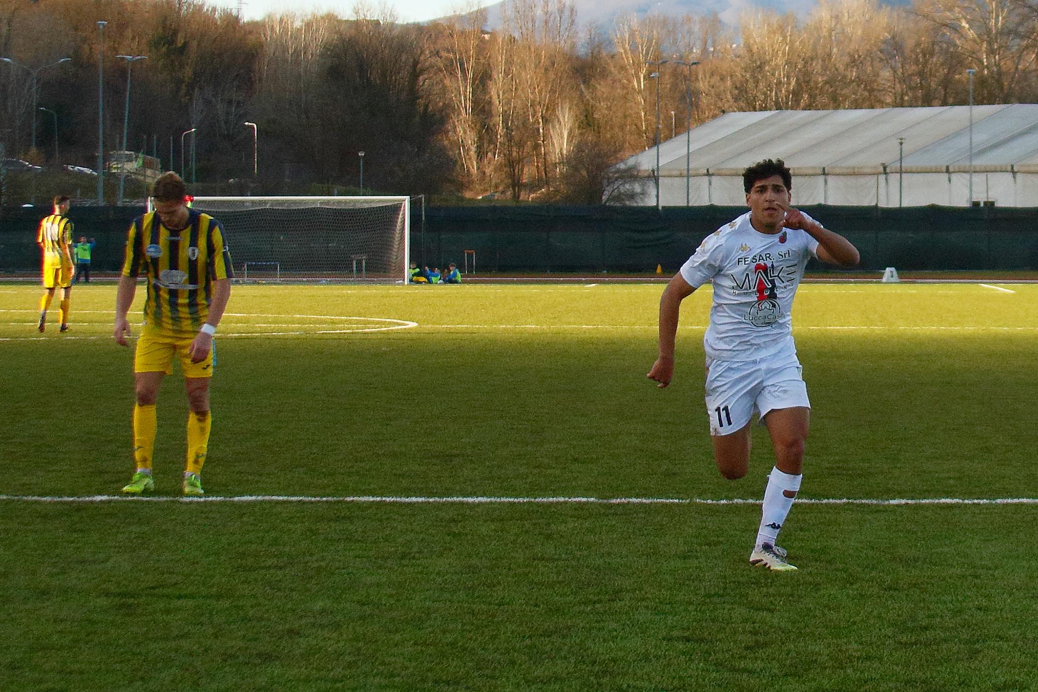 I rossoneri sbloccano il match a pochi secondi dalla fine grazie a un gol di Sansaro. Dopo un primo tempo sottotono, Lucchese vicina al gol Riad, Bartolotta e Riad ma sbattono contro la difesa apuana sino al colpo di testa decisivo