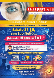 Sabato 31 gennaio dalle ore 15 alle ore 17 si svolgerà presso la sede centrale dell'ISI Pertini in Viale Cavour 267 una conferenza divulgatoria sul tema dell'uso della AI nella scuoa dal titolo "Parla di IA con tuo figlio, prima che l’IA parli con lui"