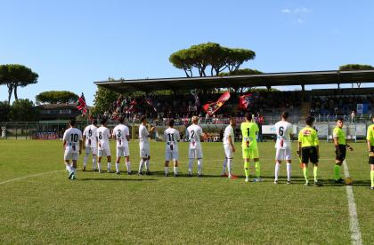 In una giornata ventosa ma assolata, la Lucchese non va oltre il pari in quel di Forte dei Marmi: i rossoneri mostrano ancora una volta buone trame e tanta voglia di fare, ma davanti mancano i guizzi vincenti e anche un po' di precisione. Il pari è inevitabile e buon per i rossoneri che Milan è comunque attento quando viene chiamato in causa. Mister Pirozzi ritrova capitan Santeramo al centro della difesa e in avanti si affida a Galotti, Caggianese e Bartolotta, lasciando almeno inizialmente in panchina Riad.