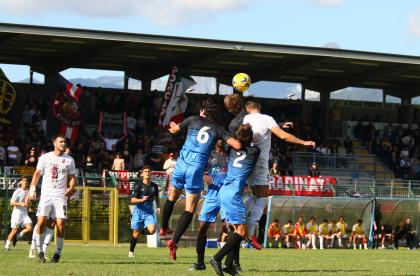La ripresa parte a razzo: prima Caggianese non trova l'attimo per concludere in area, sul contropiede Campo conclude fuori di poco. Sansaro accusa un problema muscolare, dentro Palo. Palma si divora una occasione ormai solo davanti al portiere, poi sul contropiede Borselli trova il piedone di Milan che impedisce il gol: tutto in pochi secondi. Pirozzi butta dentro Riad per cercare il jolly, e poco dopo Lorenzini. La Lucchese è in costante pressione offensiva, rischiando anche qualcosa sulle rimesse dei padroni di casa, anche perché i rossoneri ora sono meno equilibrati rispetto al primo tempo. Galotti, partita in ombra la sua, cincischia su un gran assist di Riad e l'azione sfuma: siamo al 29'. Al 38' c'è spazio anche per un gol annullato per fuorigioco a Caggianese: difficile dire se ha visto bene il guardalinee. E' un batti e ribatti può succedere di tutto. E al 94' la palla buona è per Ragghianti, ma Pastine si supera. Finisce qui: è 0-0. Tra luci e ancora qualche ombra.