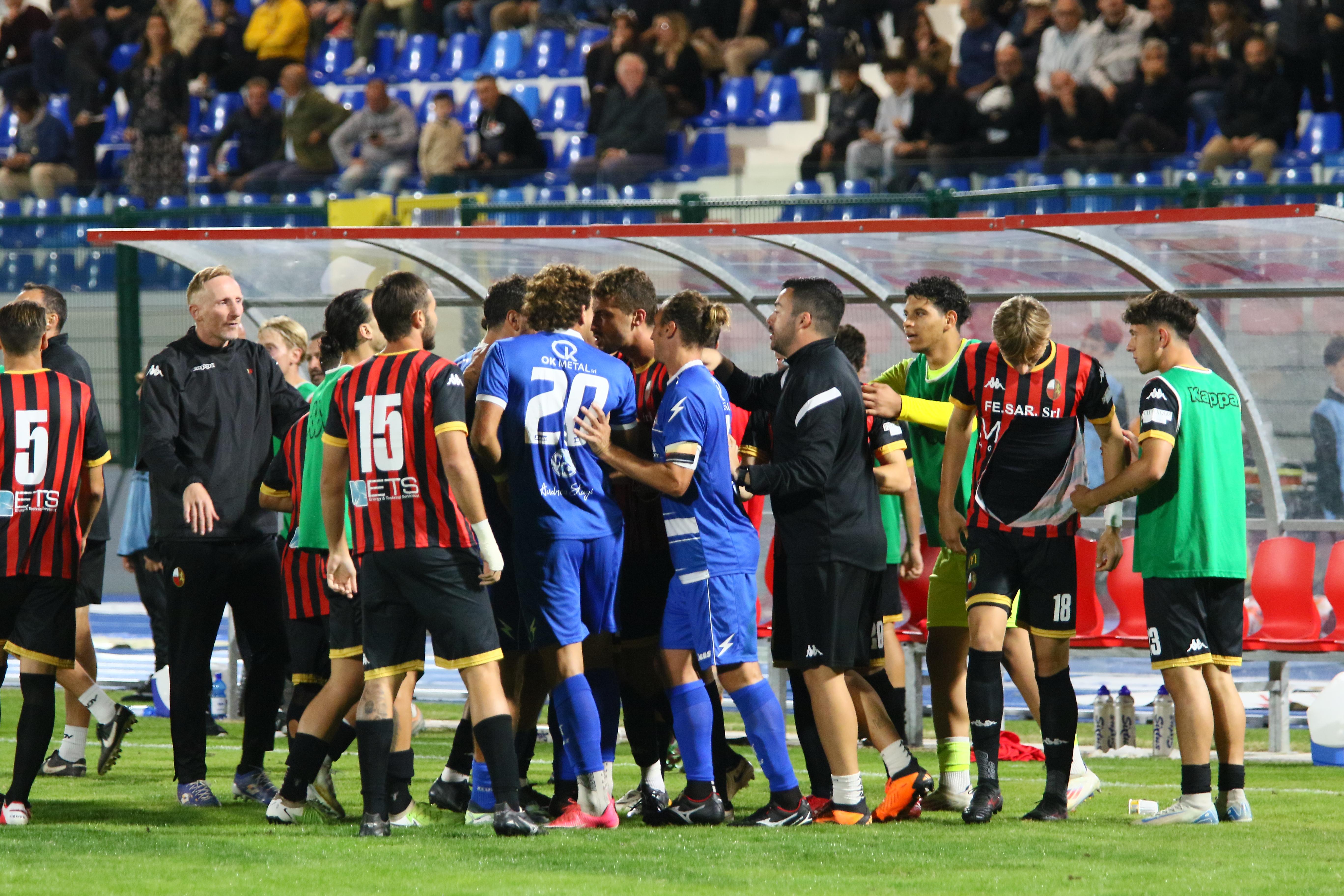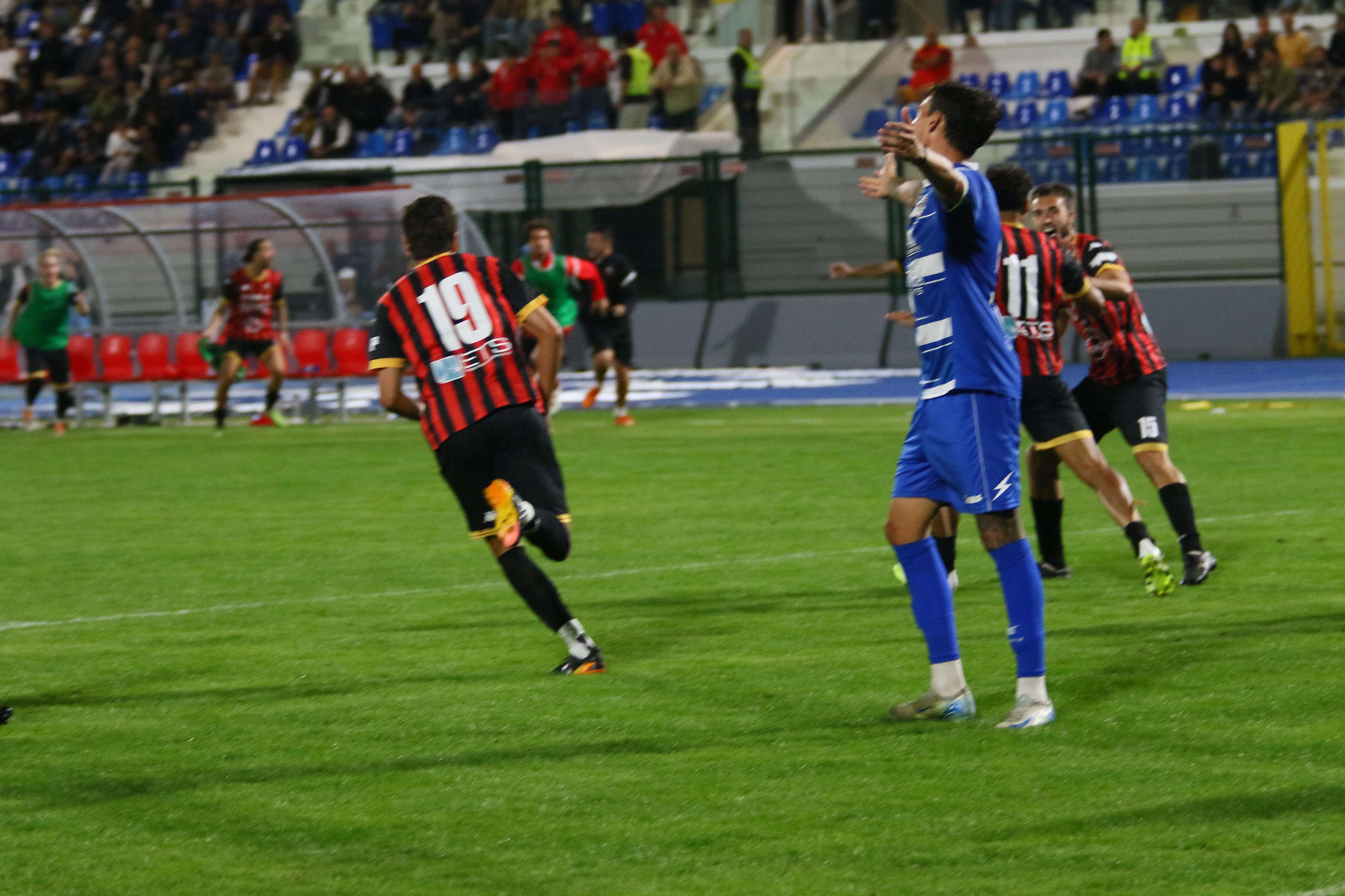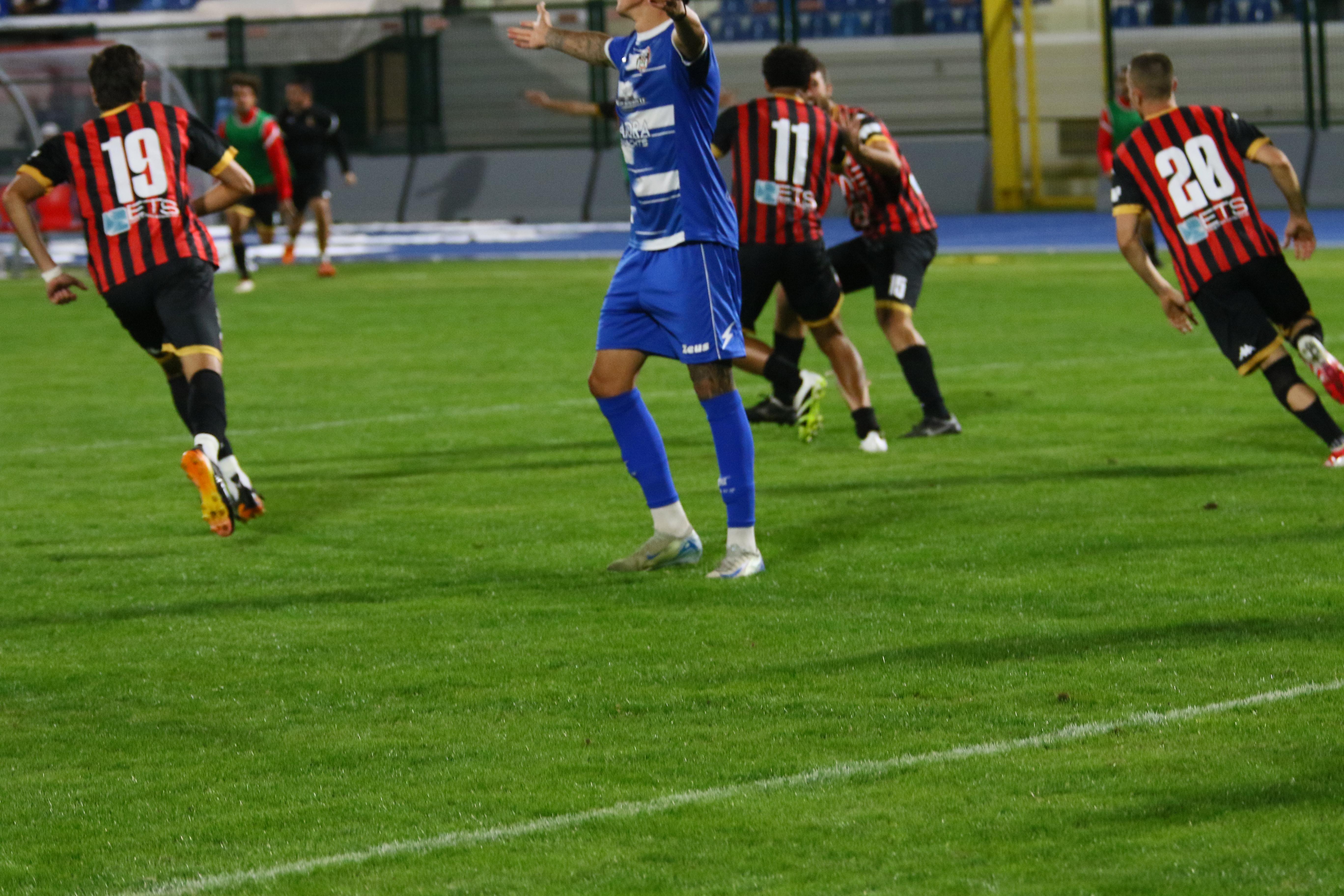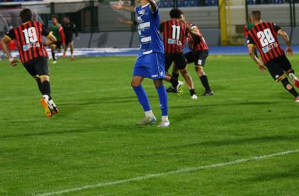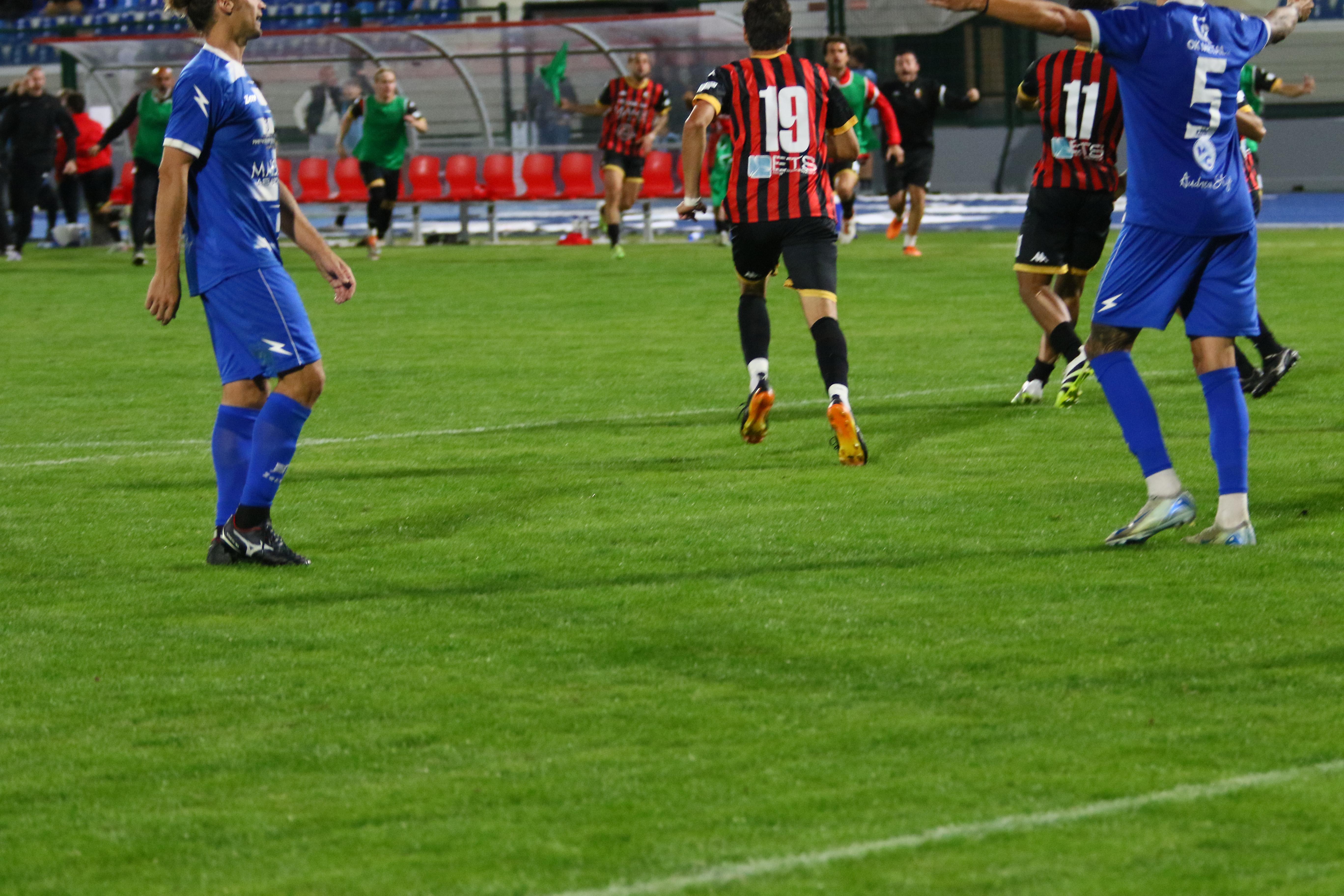 Un derby, più sentito nella città di mare che nel capoluogo, ma il cui fascino e storia si perdono nella notte dei tempi che mancava da oltre 13 anni. Tanta gente allo stadio ma solo di fede bianconera visto che la gara era vietata (incredibilmente non è ancora agibile il settore ospiti) ai tifosi rossoneri.Mister Pirozzi lancia Piazza in avanti affiancato da Caggianese e Riad, confermando Bartolotta a centrocampo dove trova spazio Palma.
