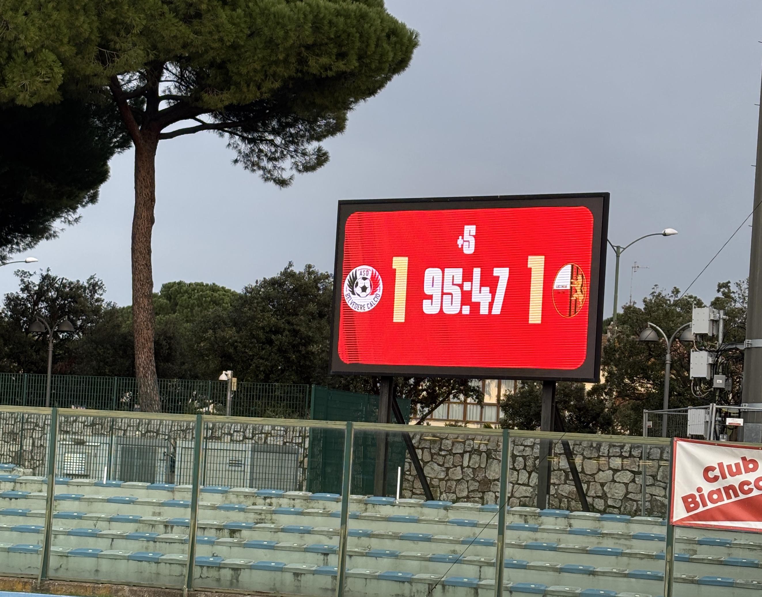 Sul terreno del Grosseto, i rossoneri recuperano a tempo scaduto una gara che sembrava ormai persa con il Belvedere che passato in vantaggio è stato recuperato solo a tempo scaduto e dopo che la formazione di mister Pirozzi aveva sbagliato anche un rigore. Un pari che lascia a desiderare come gioco espresso, per alcune lacune difensive e certi limiti offensivi, ma che lascia immutata la classifica al vertice visto il pari casalingo della Zenith. Mister Pirozzi sorprende un po' tutti e schiera una formazione con due terminali offensivi, (Piazze e Camilli) con Palma trequartista, ma la notizia del giorno è il recupero finalmente tra i titolari di Picchi. Caggianese e Colferai (il secondo un po' acciaccato) sono in tribuna.