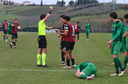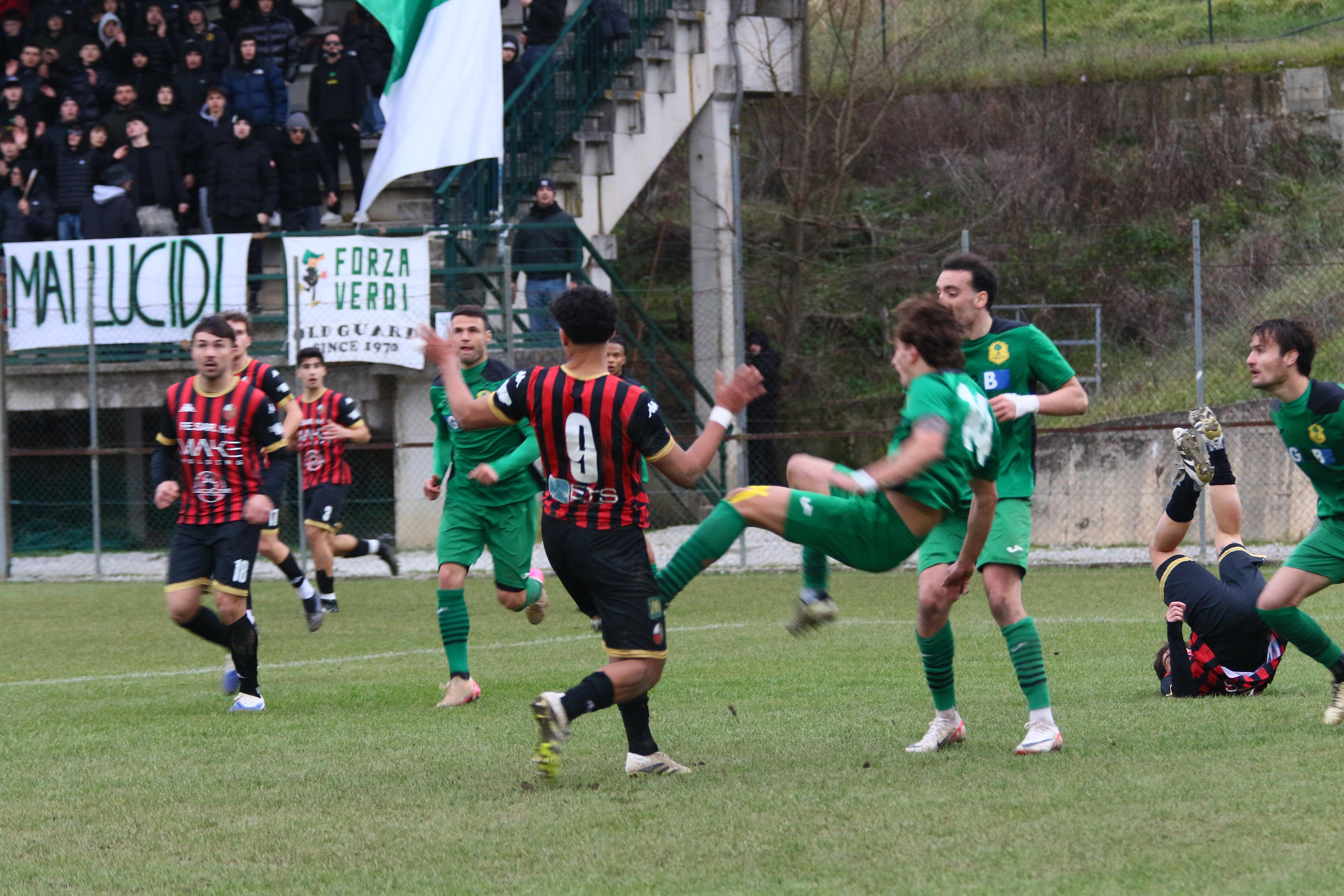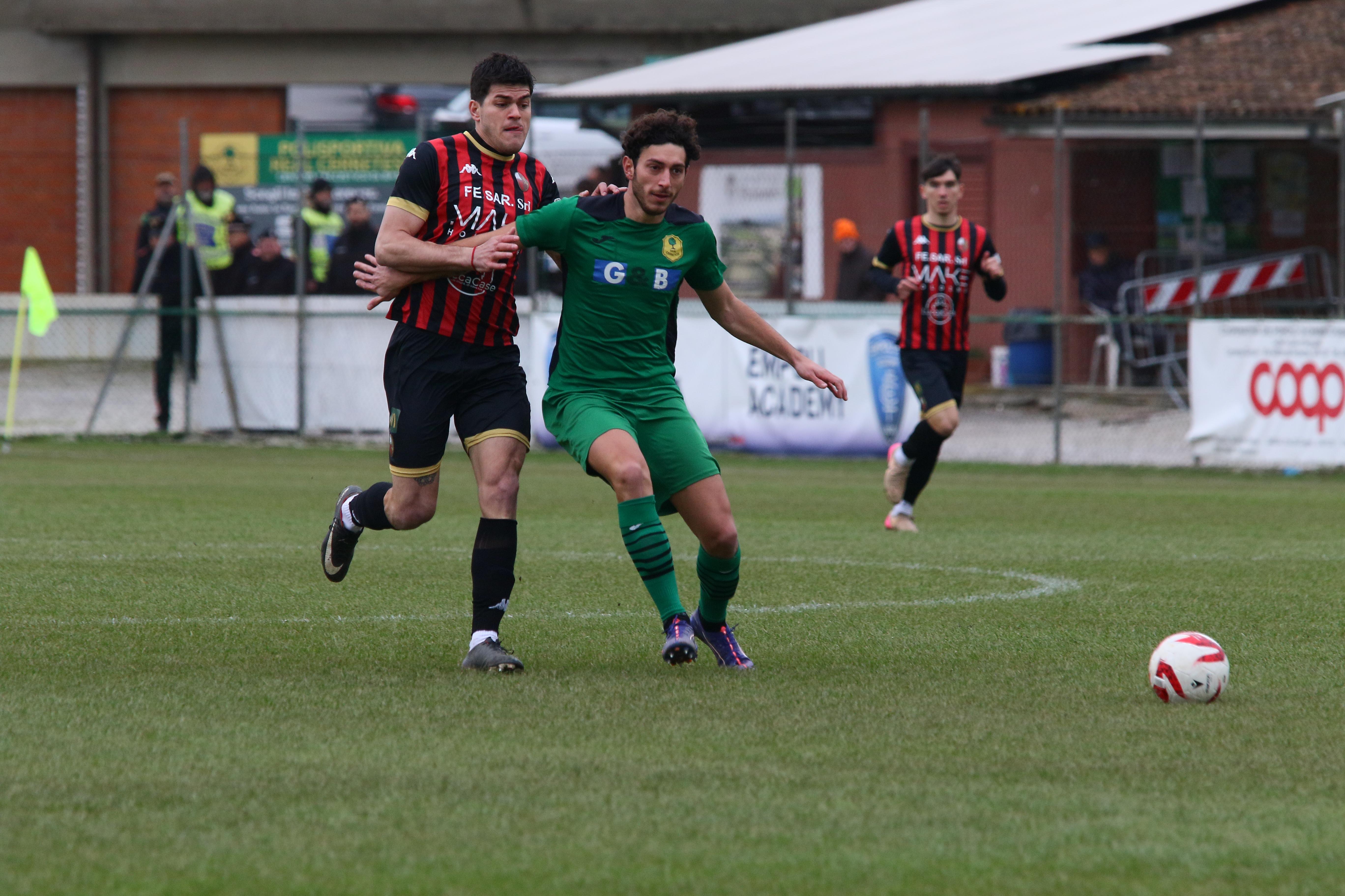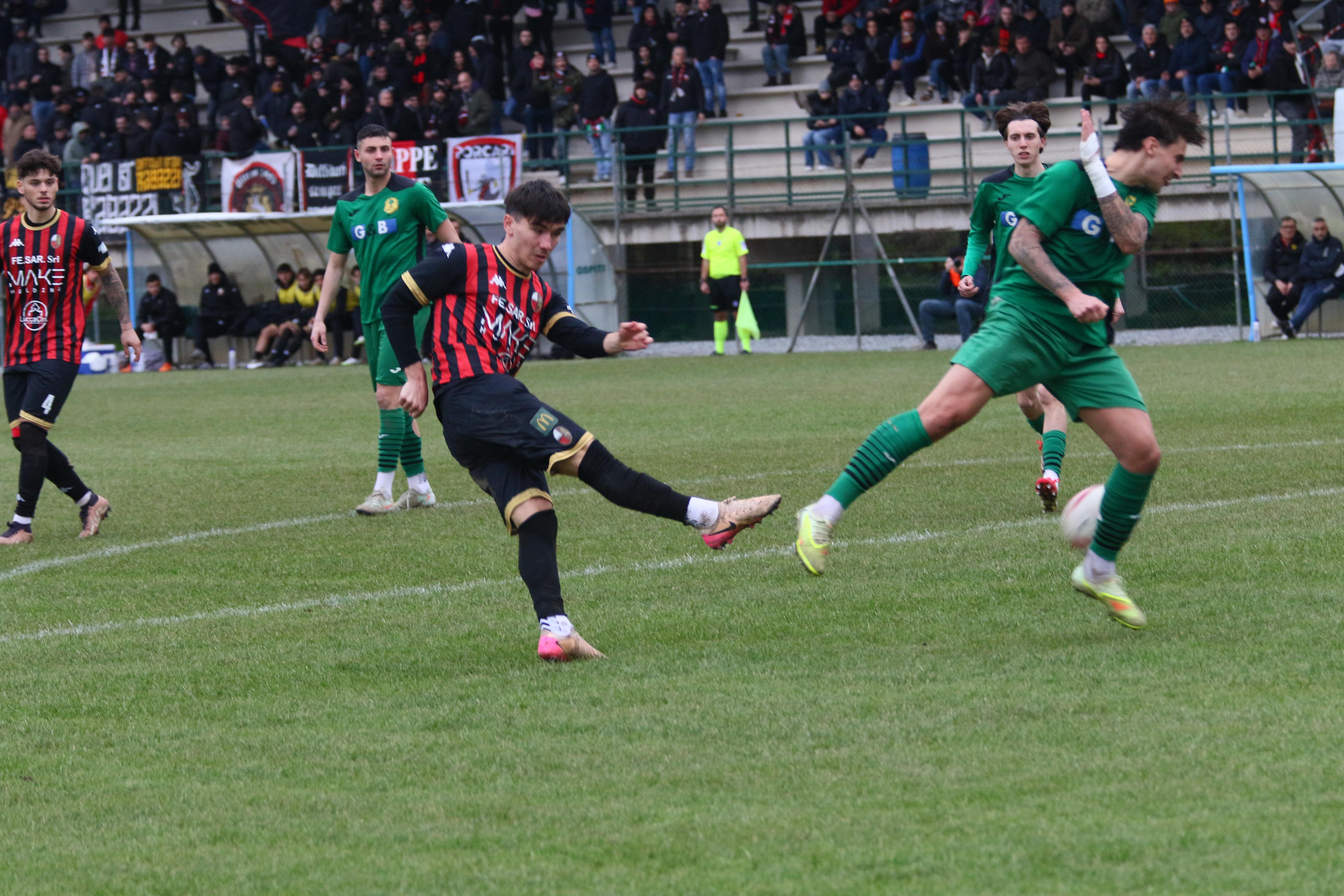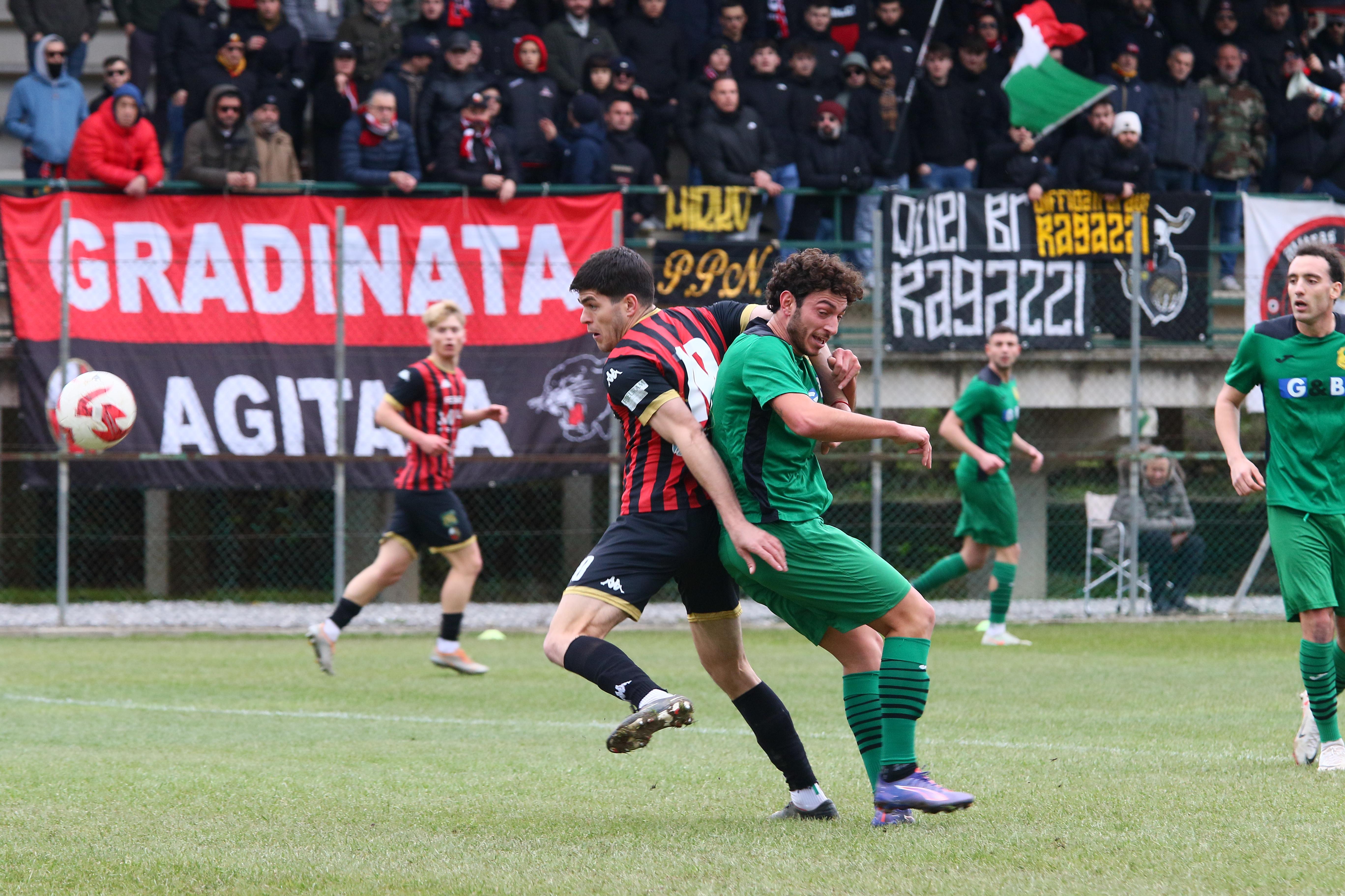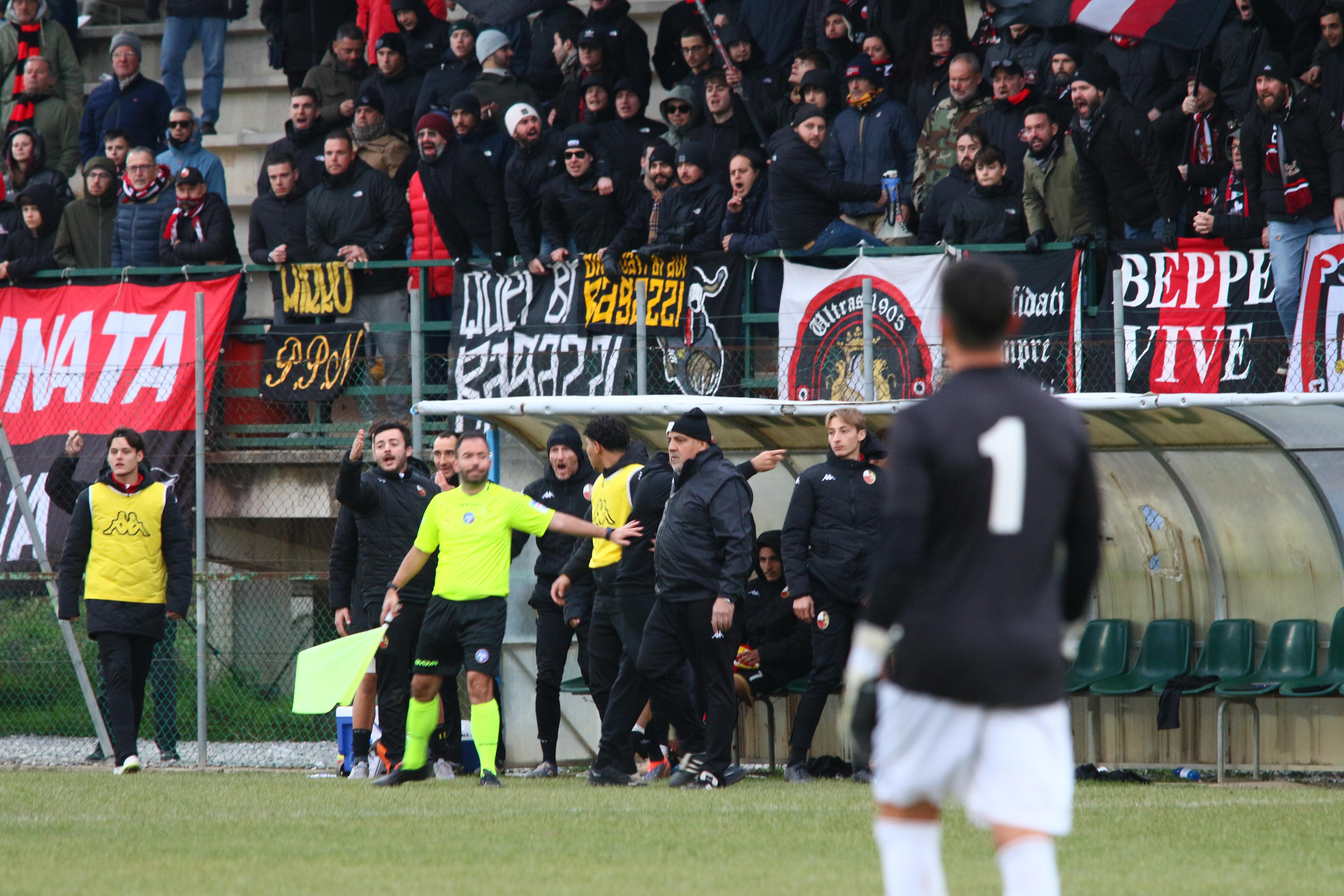La ripresa comincia con i padroni di casa subito in avanti, la gara è apertissima. Bouhafa ci prova da dentro l'area al 13', ma la palla si perde sul fondo. A metà ripresa i primi cambi: dentro Caggianese Sansaro, fuori Colferai e Palma. Santeramo non trova l'impatto giusto di testa sugli sviluppi di un angolo. La porta la trova invece Orsucci con un tirocross che inganna Milan: è il 28'. Al 31' la palla buona per ritornare in vantaggio è sulla testa di Riad che conclude fuori di poco. Poi è la volta di Caggianese su punizione, ma la palla finisce tra le braccia di Battini. Passano i minuti, i rossoneri perdono lucidità e rischiano anche sulle ripartenze dei padroni di casa. A completare le difficoltà, a una manciata di minuti dal termine arriva anche l'espulsione di Del Rosso. Finisce qui: e il 2026 inizia come era finito il 2025: con un pari che lascia comunque i rossoneri in testa.