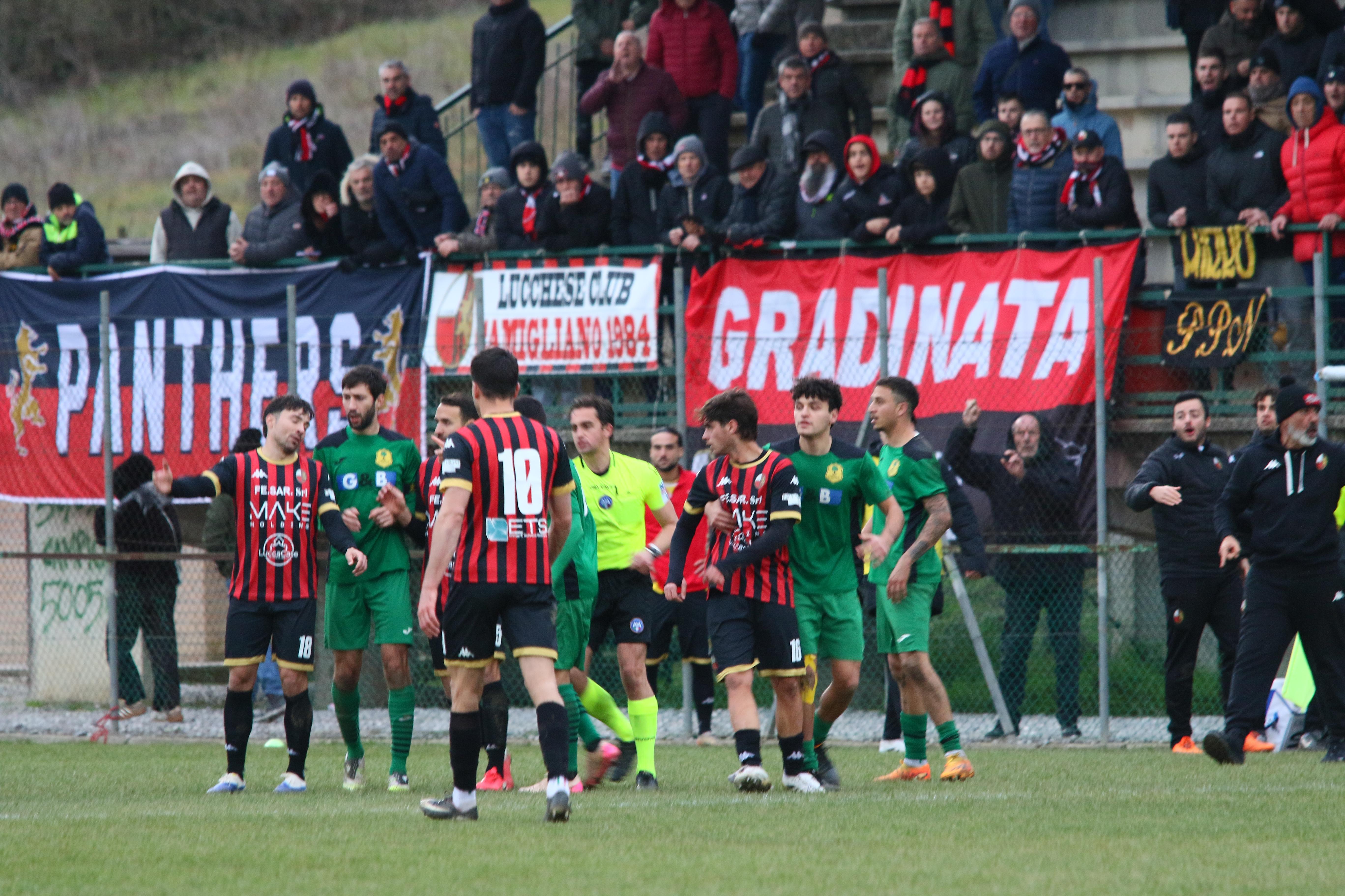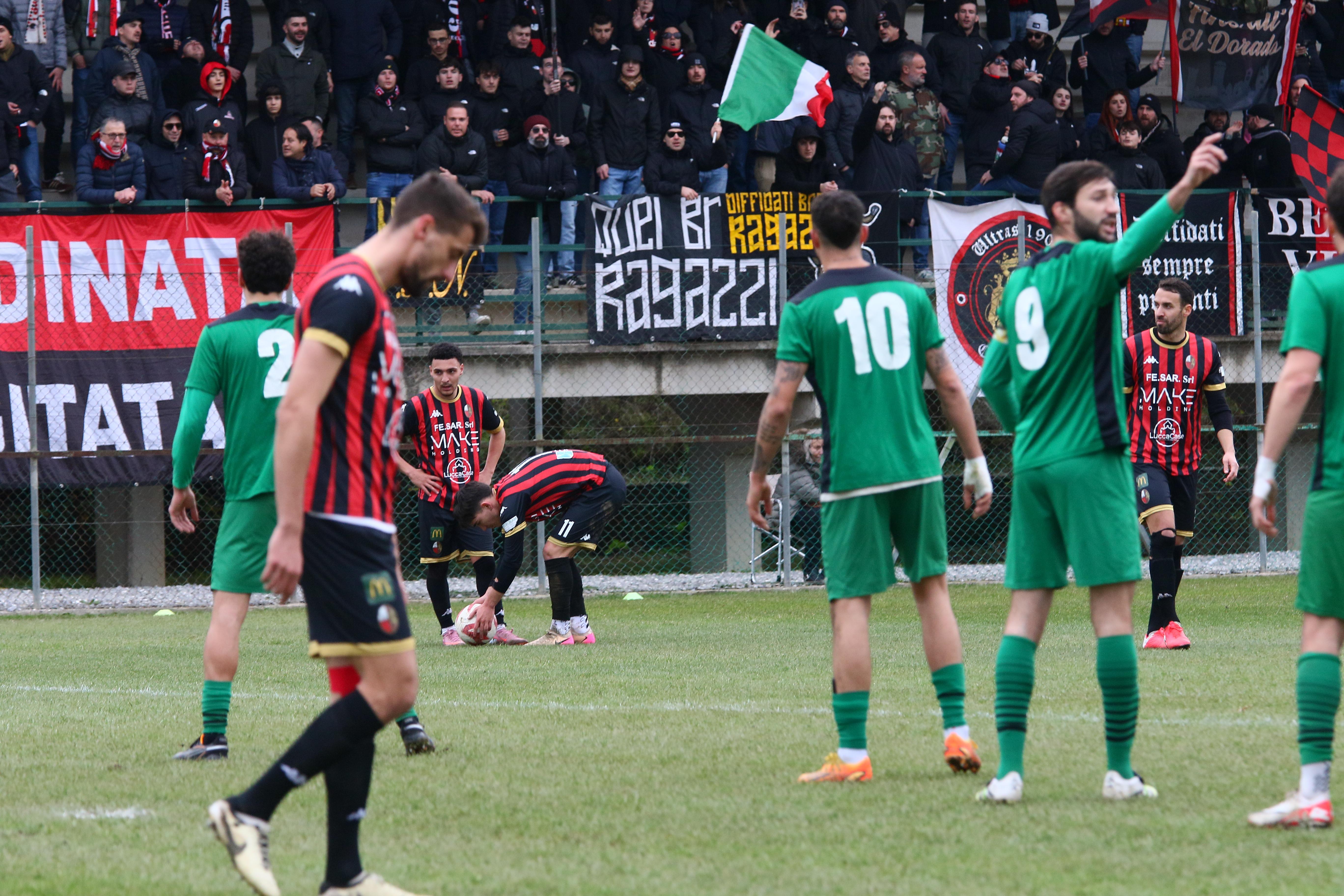 Note. Ammoniti: Nieri, Romiti, Pupeschi, Russo, Battini, Caggianese, Mordogà, Sansaro. Espulso Del Rosso. Angoli: 7-5. Spettatori 500 circa oltre la metà da Lucca.