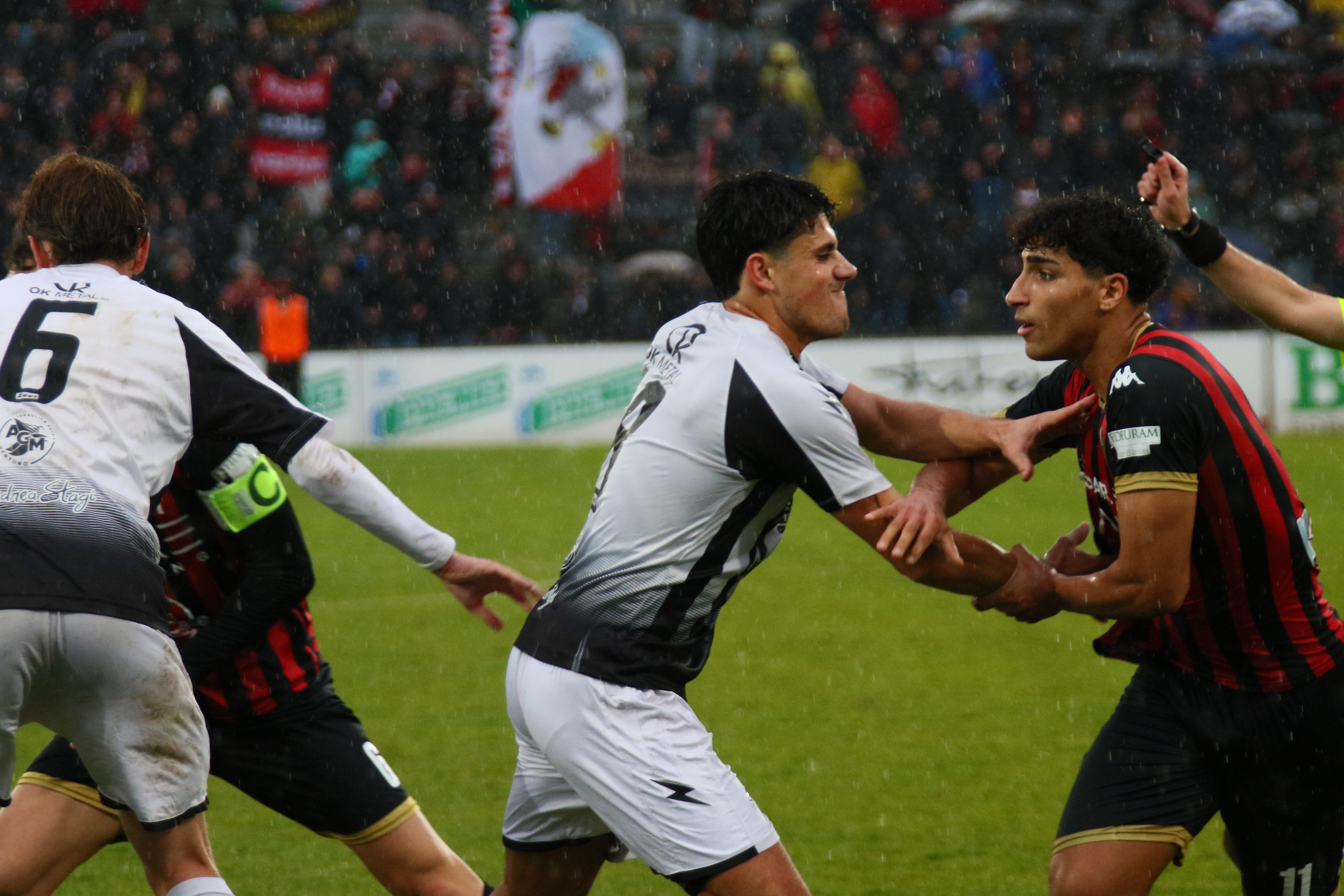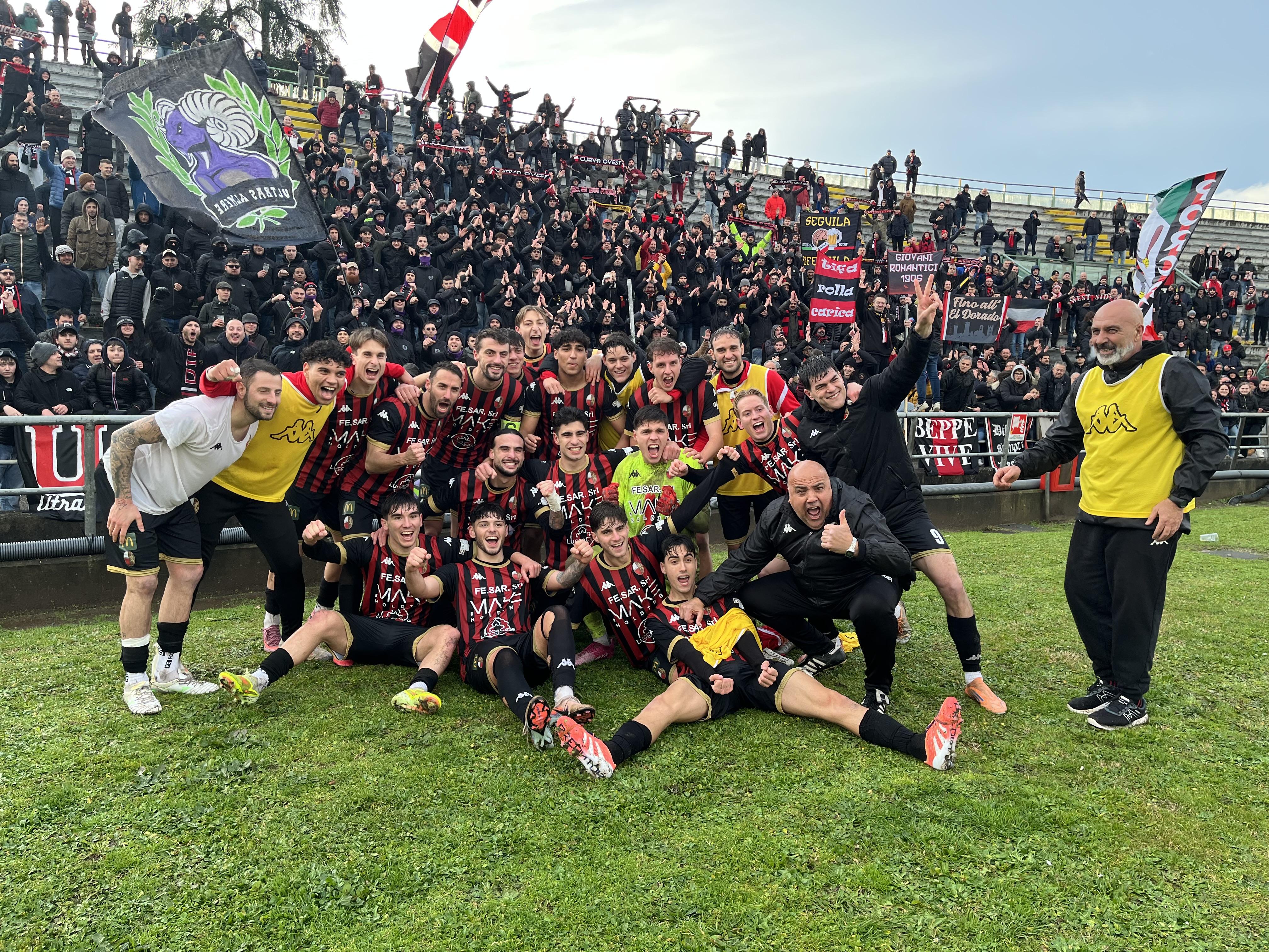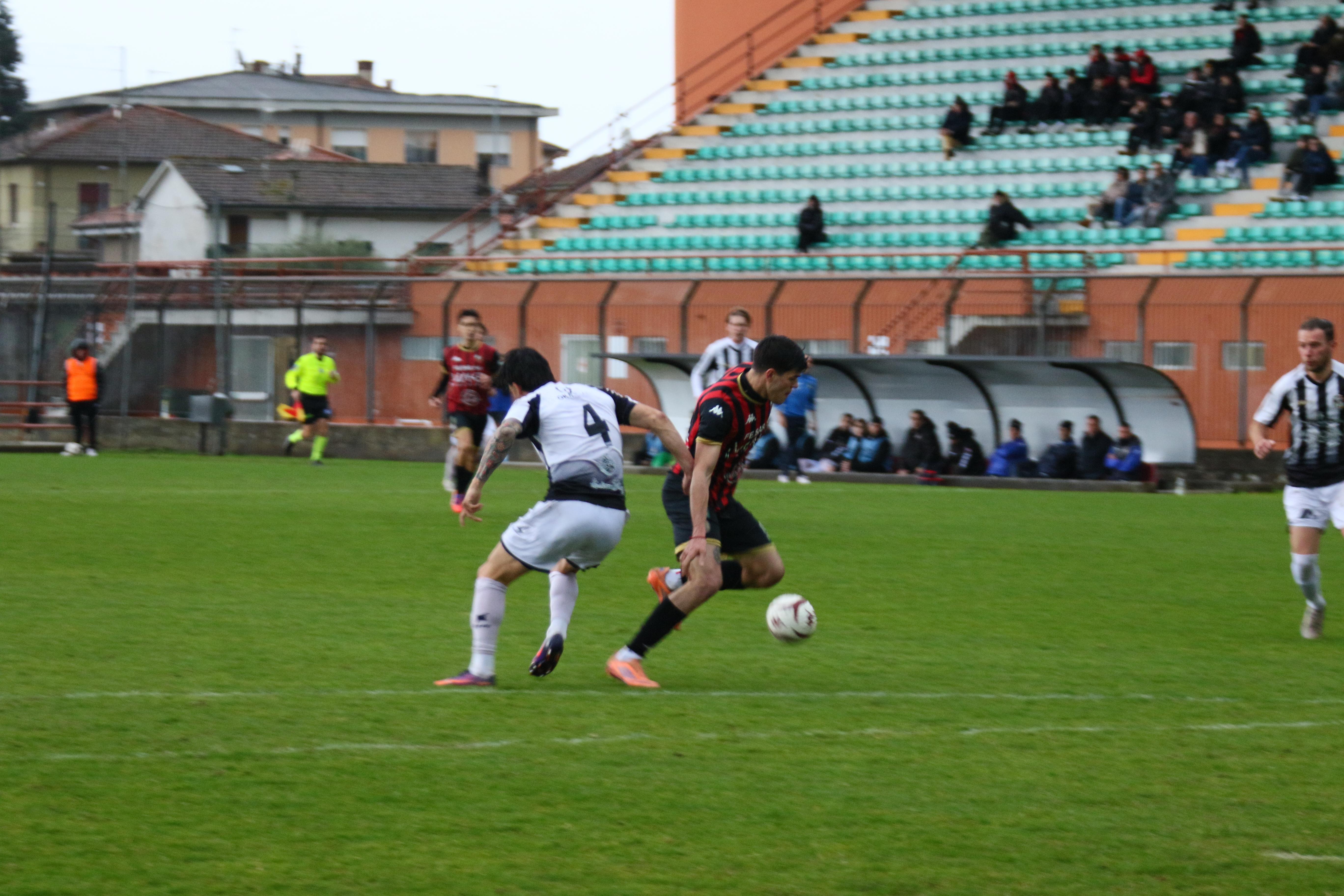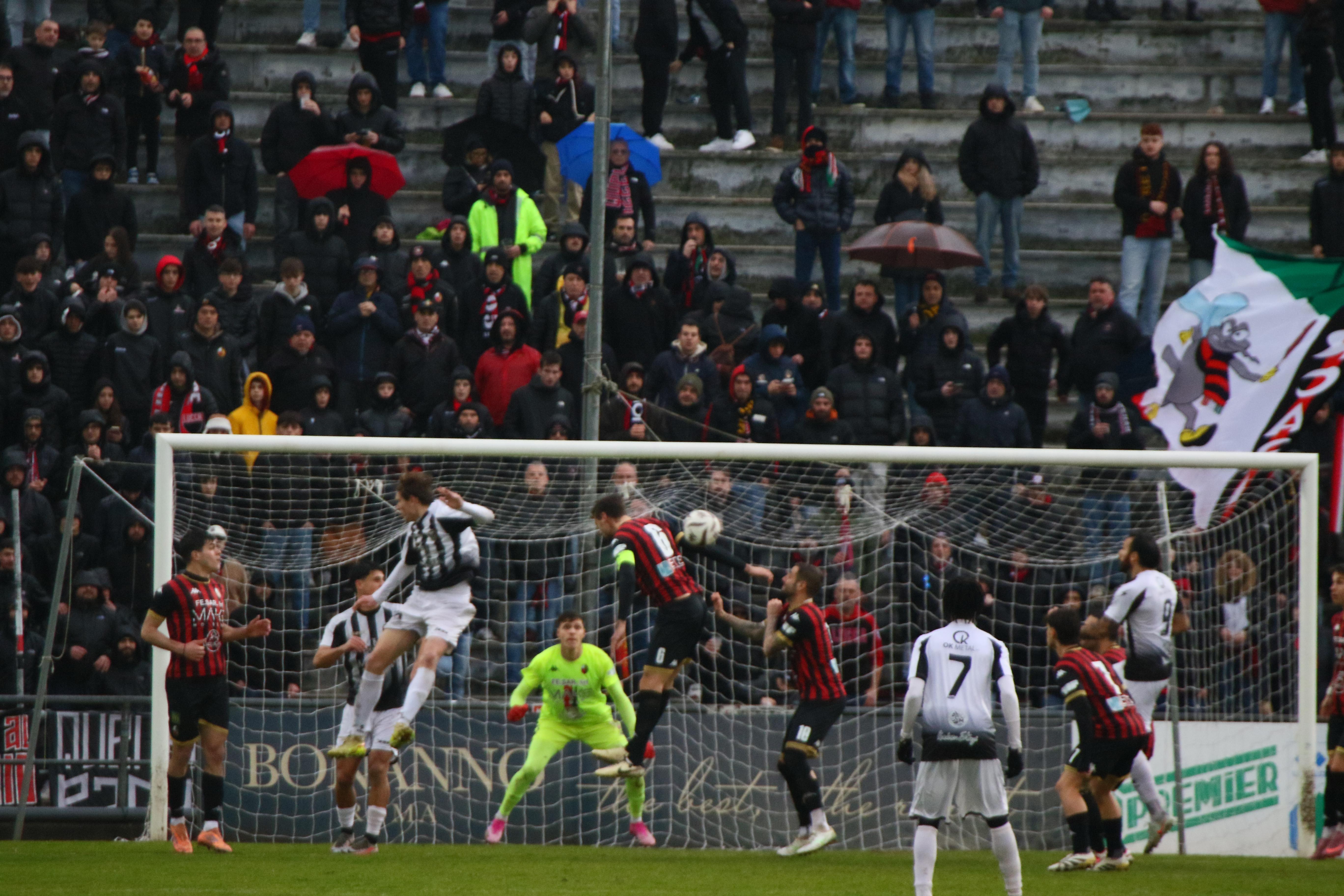 Ma i bianconeri stringono di assedio la Lucchese: una mischia furiosa prima e poi una parata di Milan su Galligani quando siamo al 42'. E' un parapiglia in campo con Galligani che vergognosamente non restituisce un pallone con l'inganno provando a beffare la difesa rossonera. Le lancette scorrono, l'arbitro concede addirittura nove minuti di recupero. Al terzo dei quali Pegollo centra una traversa in sospetto fuorigioco. E' un assedio in un clima rovente. Ma gli sforzi degli ospiti si infrangono sulla ferocia difensiva dei rossoneri. E' una vittoria pesantissima. Che regala il primo posto in solitudine.