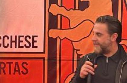 Guardare avanti, oltre la pur legittima delusione per la finale persa in Coppa Italia: ecco l'obiettivo ribadito da tutti i protagonisti della Lucchese che insieme a circa 150 tifosi, nonostante l'acqua a catinelle, si sono ritrovati al Caffè delle Mura per scambiarsi gli auguri per le festività natalizie. Non c'è tempo per dolersi della finale, incombe la gara di Fucecchio e l'obiettivo del campionato, è la convinzione che tifosi per primi hanno ribadito in una serata trascorsa in serenità (nel contest per l'assegnazione di una maglia è risultata vincitrice la tifosa Chiara), come da tempo non si vedeva a Lucca, durante la quale hanno preso la parola i protagonisti. A cominciare da capitano Santeramo che si è detto dispiaciuto per la gara e per gli errori prima di tutto per i tanti tifosi giunti sino a Firenze.