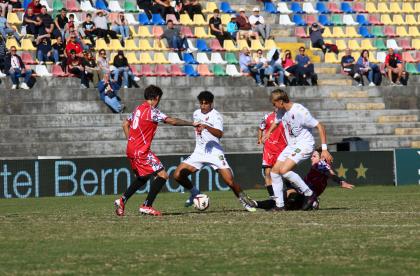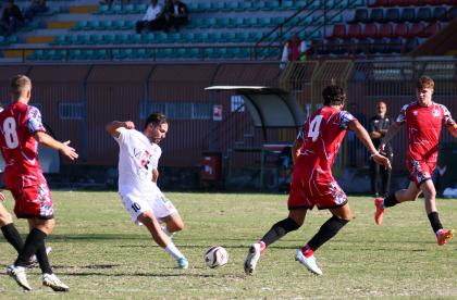 Mister Pirozzi ritrova a centrocampo Picchi e in attacco lancia dal primo minuto Ragghianti, che viene affiancato da Riad e da Caggianese, con Bartolotta arretrato a centrocampo. In difesa, sull'esterno, c'è lo sorpresa Lorenzini. Rispetto a sette giorni fa sono quattro i cambi nella formazione iniziale. I rossoneri, oggi in maglia bianca, partono con una occasione di Bartolotta al 3' ma il portiere ospite è attento. Nei primi minuti la pressione dei padroni di casa è costante. E al 10' porta i suoi frutti: l'azione è insistita, a chiuderla con un gran gol è Lorenzini con un tiro imparabile dal limite.