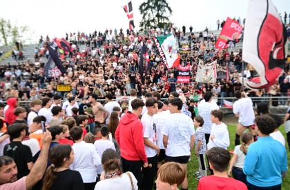 Mister Pirozzi dà fiducia a coloro che ha maggiormente impiegato, a partire dai due esterni di difesa Xeka e Lorenzini, a centrocampo Del Rosso è preferito a Russo, mentre in attacco con Riad ancora non al meglio la maglia da titolare resta sulle spalle di Piazze. In un catino carico di entusiasmo e di 3500 persone, numeri impressionanti per il contesto, i rossoneri partono bene e vanno in gol con Piazze al 2': per il guardalinee è in fuorigioco. Dubbio. Ma i rossoneri insistono e mettono subito alle corde gli ospiti: al 3' Piazze conclude fuori di poco, al 6' Del Rosso impegna Rizzato, la pressione è continua. Al 12' ci prova Picchi da fuori, palla che va sopra la traversa. E' l'anticipo del vantaggio: Lorenzini viene steso in area: calcio di rigore e cartellino per Regoli. Dal dischetto trasforma Fedato, con freddezza che corre verso una Curva Ovest che ruggisce. Siamo al 13'. La reazione degli ospiti è affidata a un tiro di Remedi, con Milan che respinge.