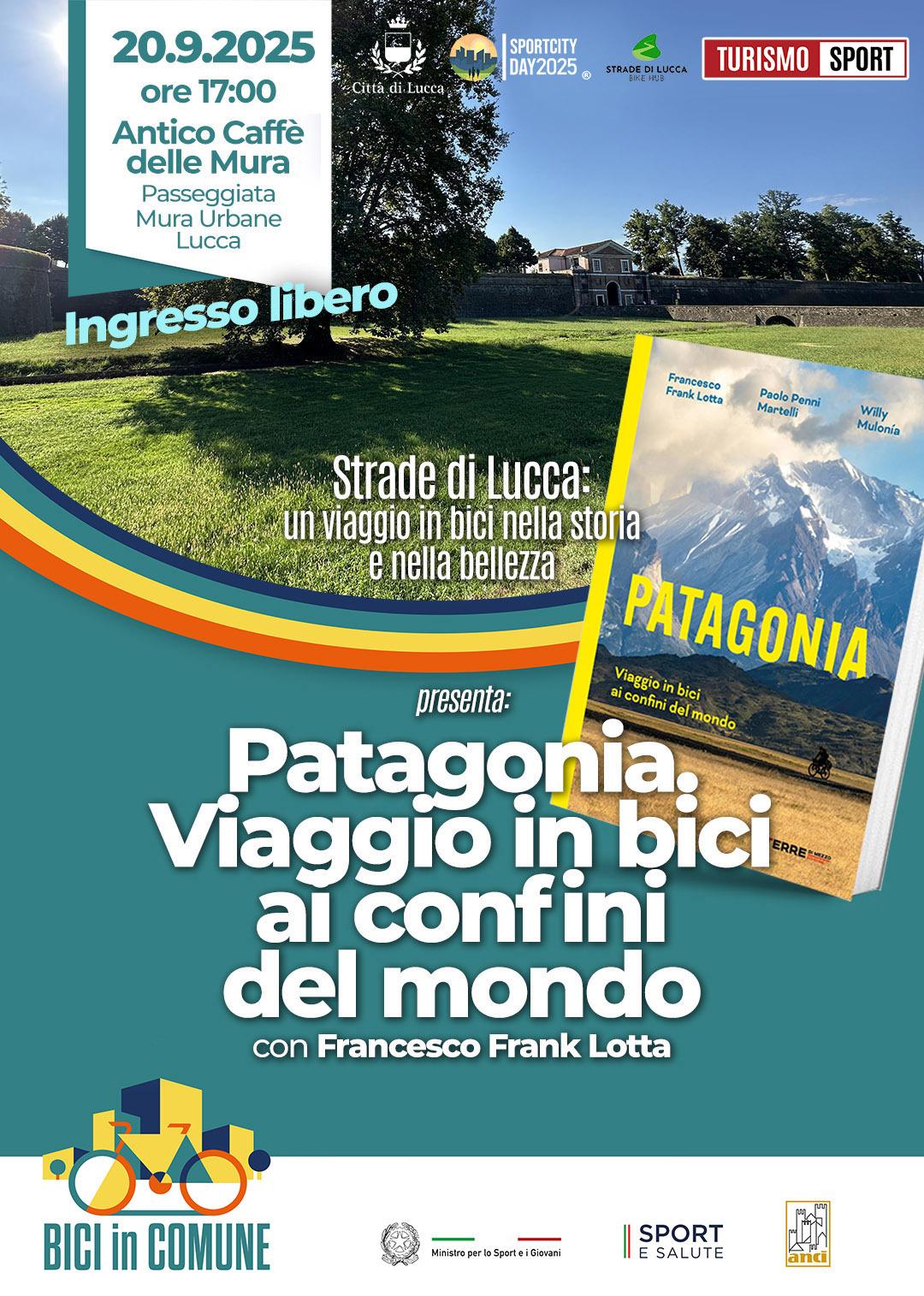 Inoltre alle 17 al Caffé delle Mura si terrà l'incontro dal titolo "Patagonia. Viaggio in bici ai confini del mondo", presentazione del libro a cura di Francesco Frank Lotta, conduttore radiofonico e deejay di Radio Deejay, che ripercorrerà il suo viaggio in bici di quasi mille chilometri: un'esperienza di incontri e di scoperte con la bicicletta come compagna di strada dimostrando che un altro modo di esplorare il territorio e il mondo è possibile. L'evento rientra nel progetto "Bici in Comune" di Sport e Salute spa di cui il Comune di Lucca è beneficiario.