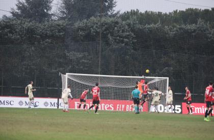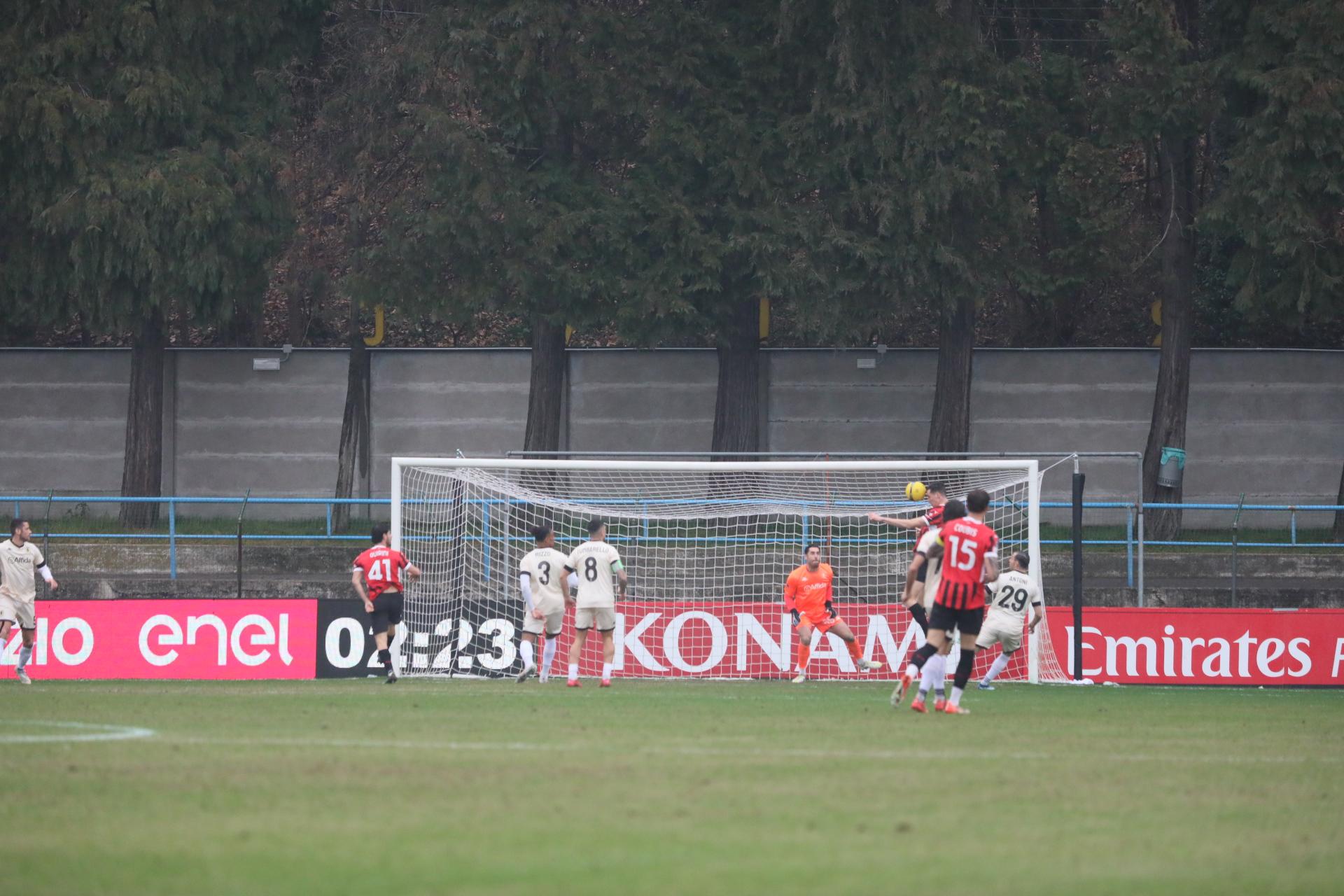 Match in un clima gelido, al confine con la Svizzera, in uno stadio in cui il Milan ha speso 700mila euro (tanto per gradire) per renderlo adeguato alla categoria, di fronte a pochi intimi e ad uno stuolo di steward che effettuano controlli di una accuratezza pari a quella delle coppe europee.In tribuna, tanti ex rossoneri illustri: Alberto Dal Molin, Beppe Folli, Antonio Obbedio; assenti, come previsto, gli ultras.Gorgone che lancia dall'inizio Rizzo e Benedetti in una inedita difesa completata da Gucher(con Fedato, Sabbione e Gasbarro nemmeno in panchina: fuori dalla lista? Saperlo, visto che non esiste comunicazione societaria).