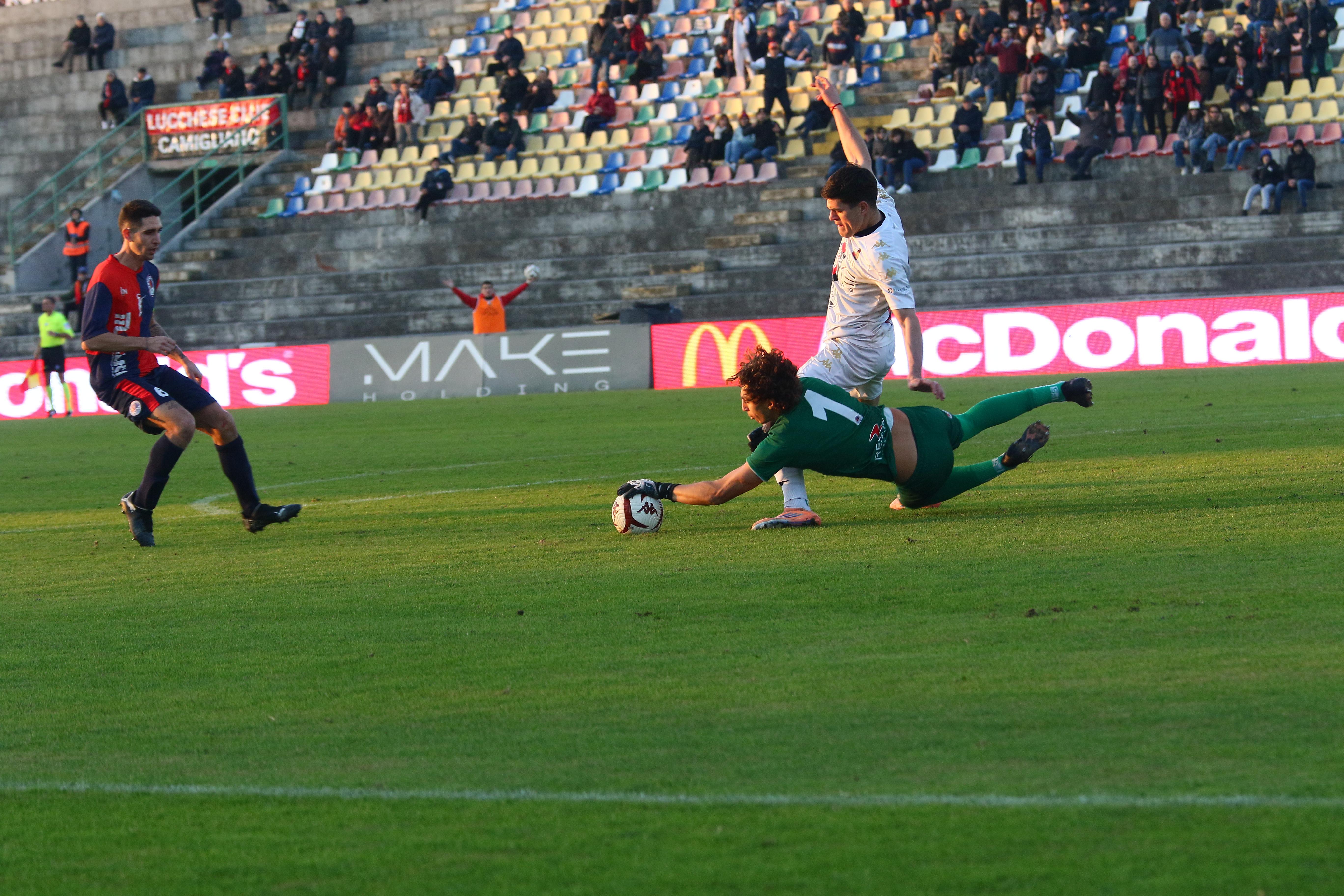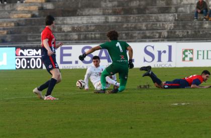 Al nono è la Lucchese pericolosa con Caggianese che sfiora il palo a sinistra di Pagni.