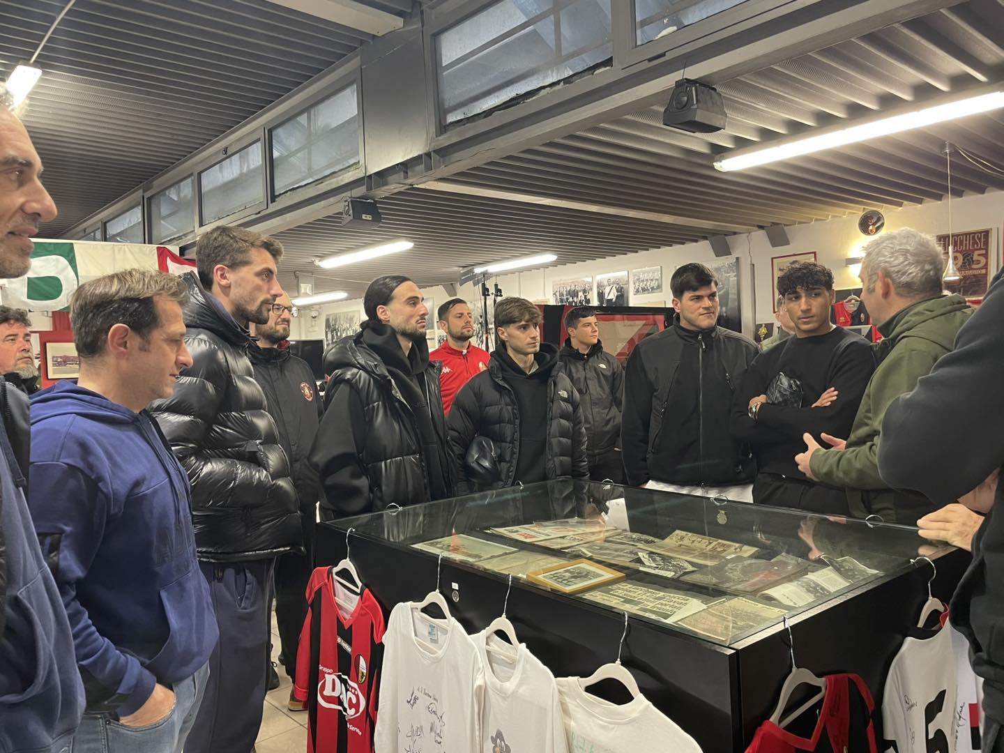 Tanti tifosi hanno accolto una rappresentanza della squadra e i massimi dirigenti della società al Museo Rossonero questa mattina. Si trattava di un incontro organizzato da Lucca United alla vigilia di Lucchese-Viareggio per condividere un momento di comunanza e sostegno.