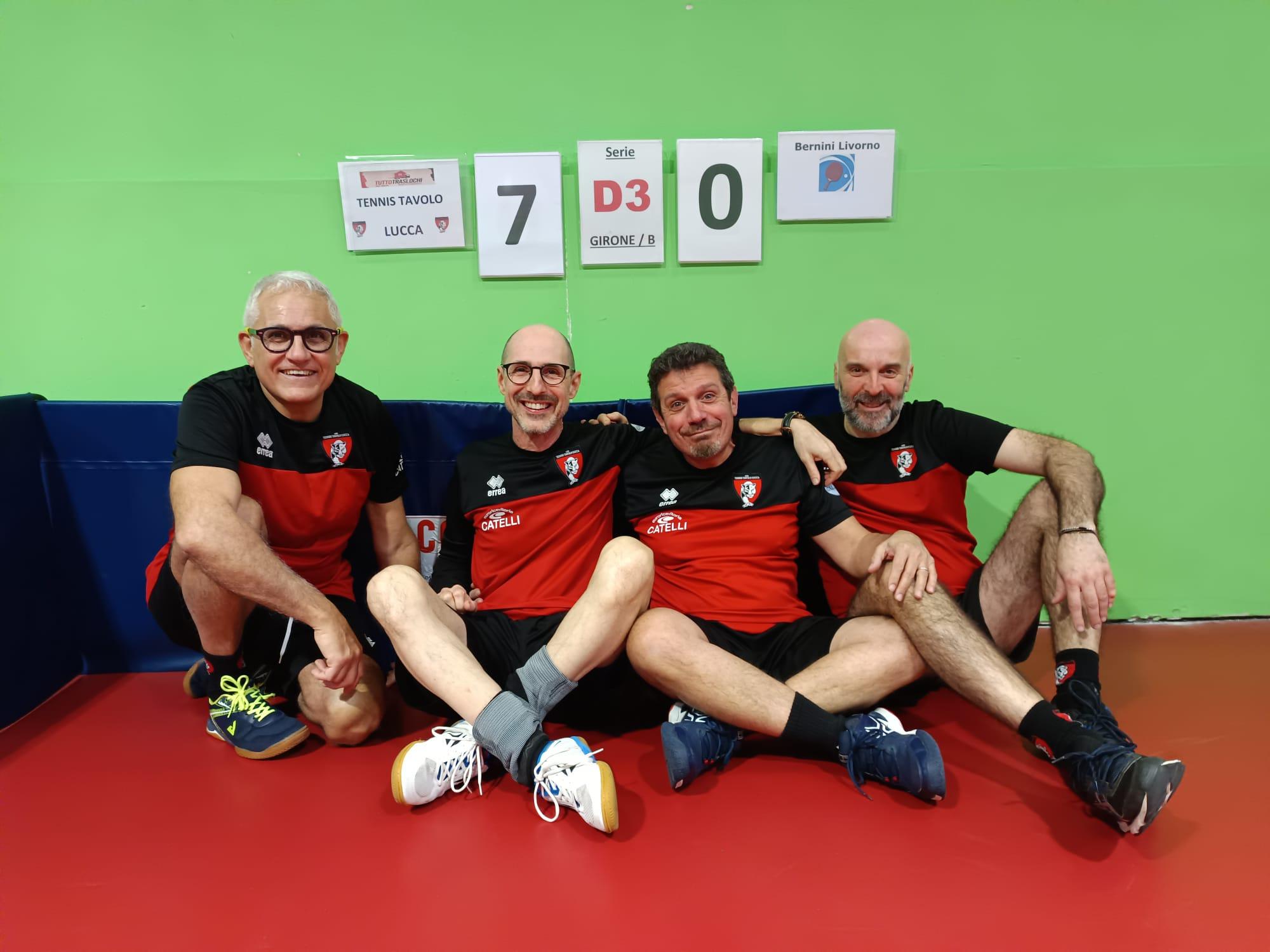 Infine, il settore D3 ha garantito i risultati più netti della giornata con due successi casalinghi contro le formazioni del Bernini TT Livorno: il gruppo A si è imposto per 5-2 grazie al doppio Casale/Barsotti, alla doppietta di Casale e ai punti di Barsotti e Caroli, mentre il gruppo B ha chiuso con un perentorio 7-0 frutto del doppio Del Greco/Martinucci, delle doppiette di Quattriglia e Donisi e delle vittorie di Del Greco e Martinucci.