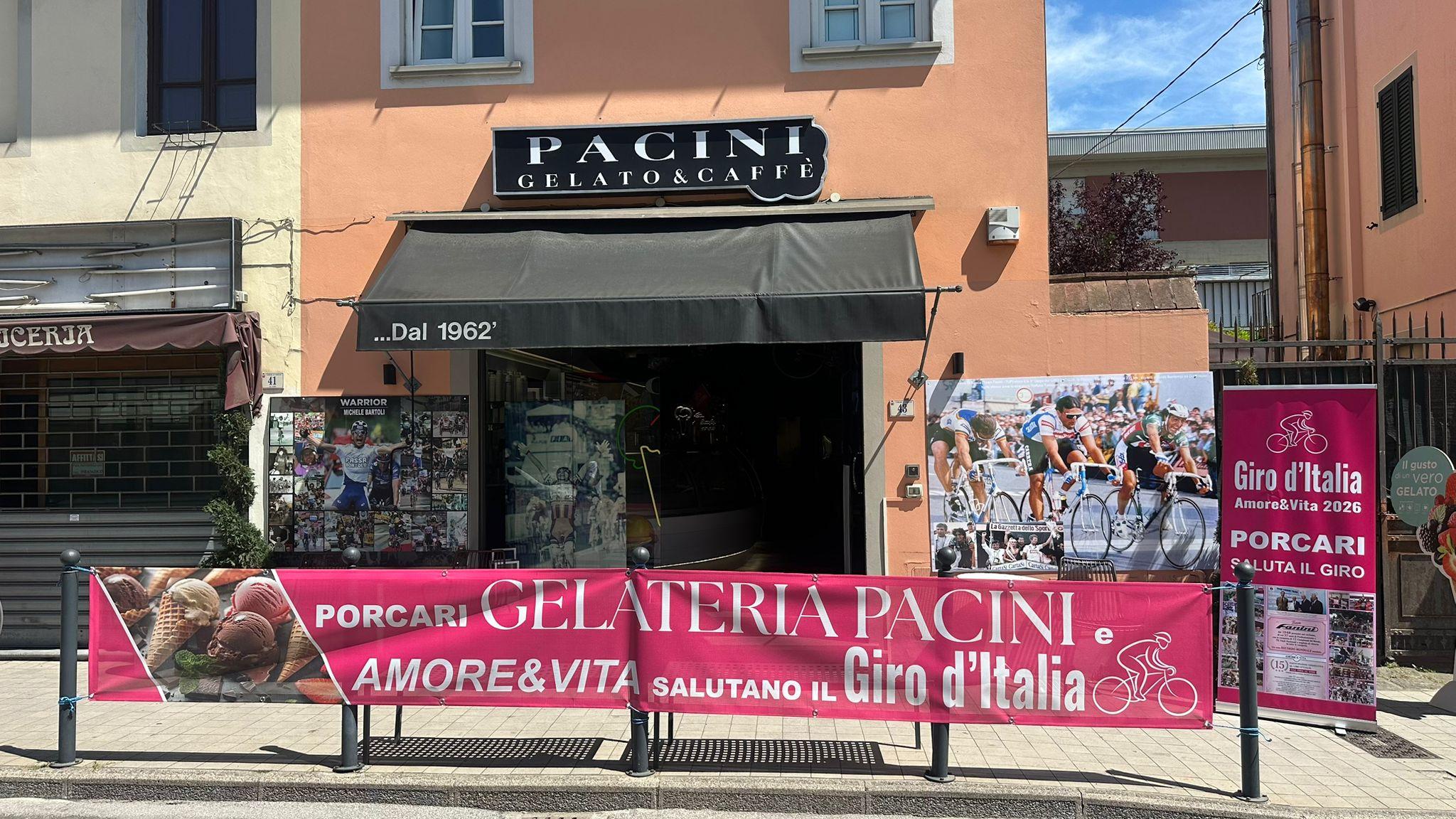 Si avvicina il Giro d'Italia sulle strade della provincia di Lucca. A Porcari, che fra pochi giorni ospiterà la partenza dell'11ª tappa della corsa rosa, l'attesa si trasforma in passione concreta con la Gelateria Pacini rende omaggio al Giro d'Italia e alla storia del Team Fanini – Amore e Vita.
