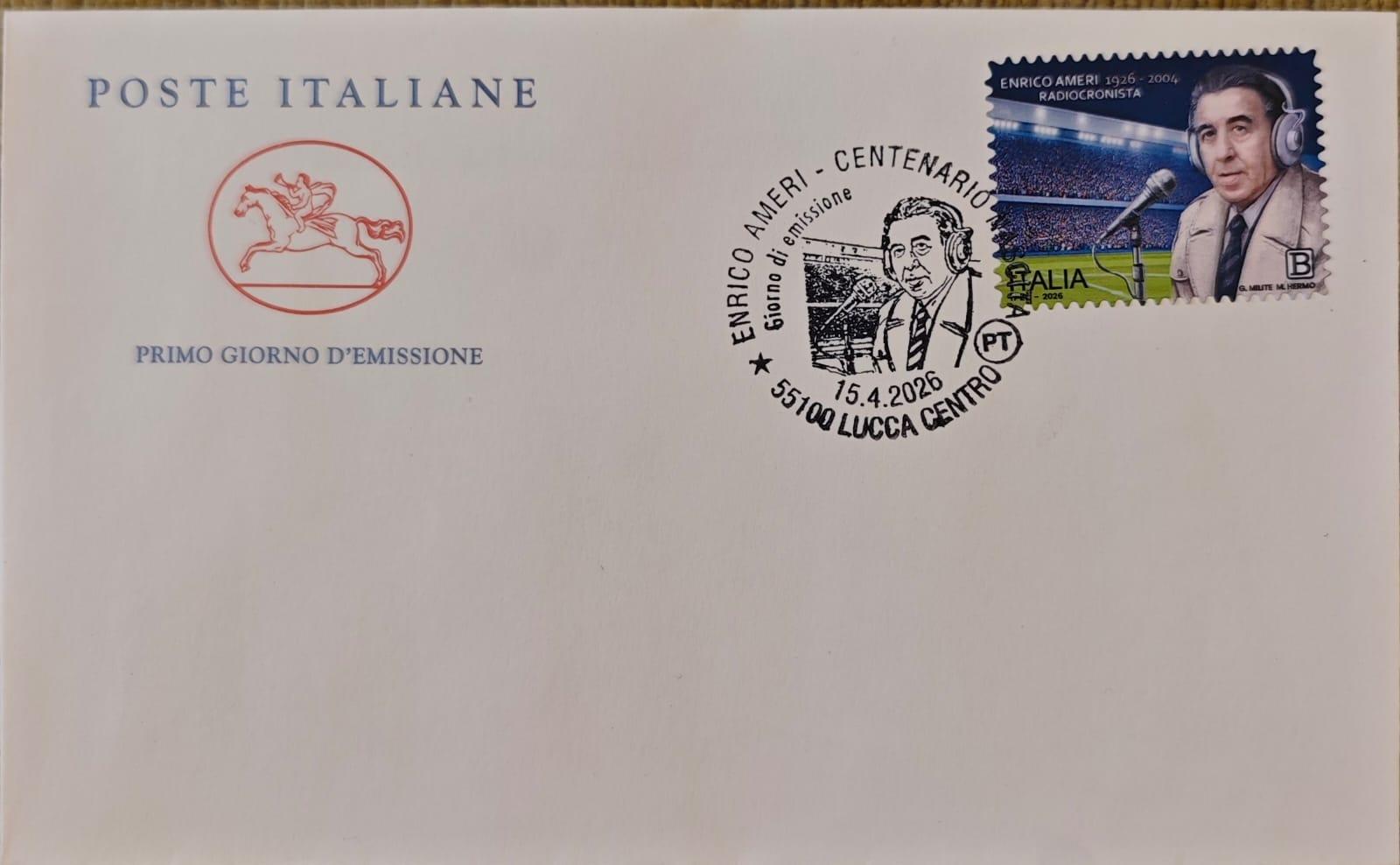 Presentato a Lucca un francobollo emesso dal Ministero delle Imprese e del Made in Italy appartenente alla serie tematica “le eccellenze del Patrimonio culturale italiano” dedicato a Enrico Ameri, nel centenario della nascita, relativo al valore della tariffa B pari a 1,30€ euro . La tiratura è di centottantamila esemplari.