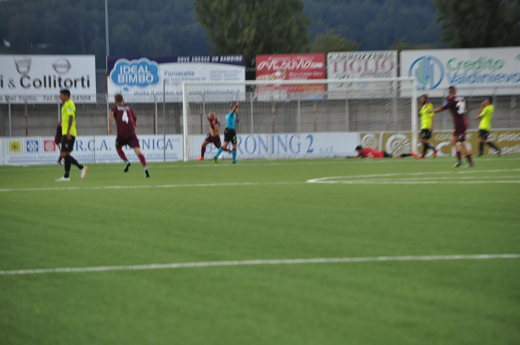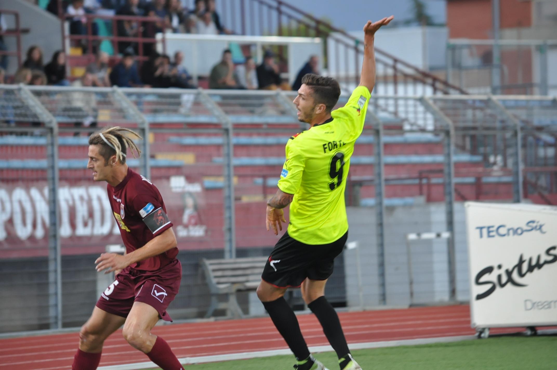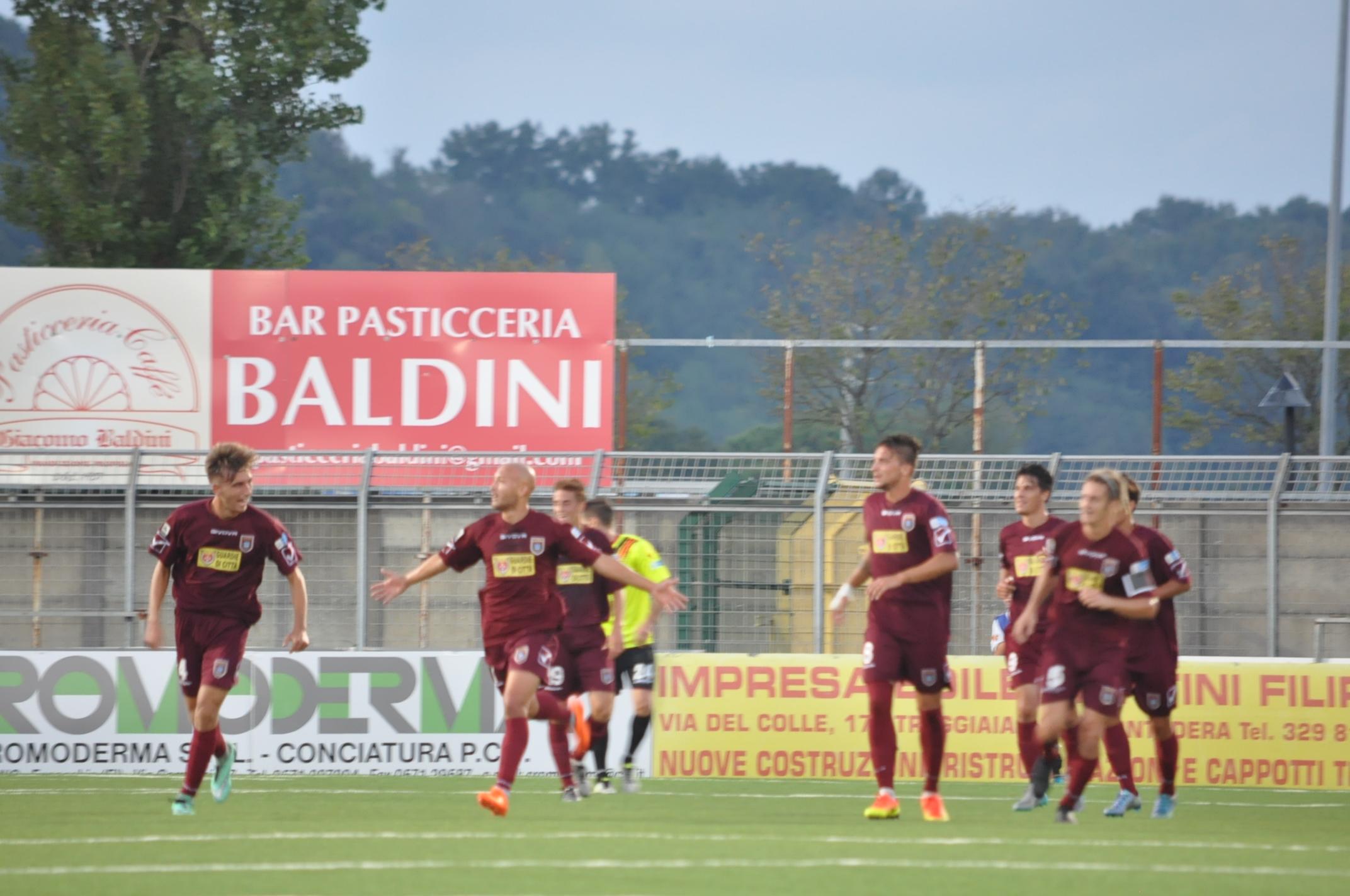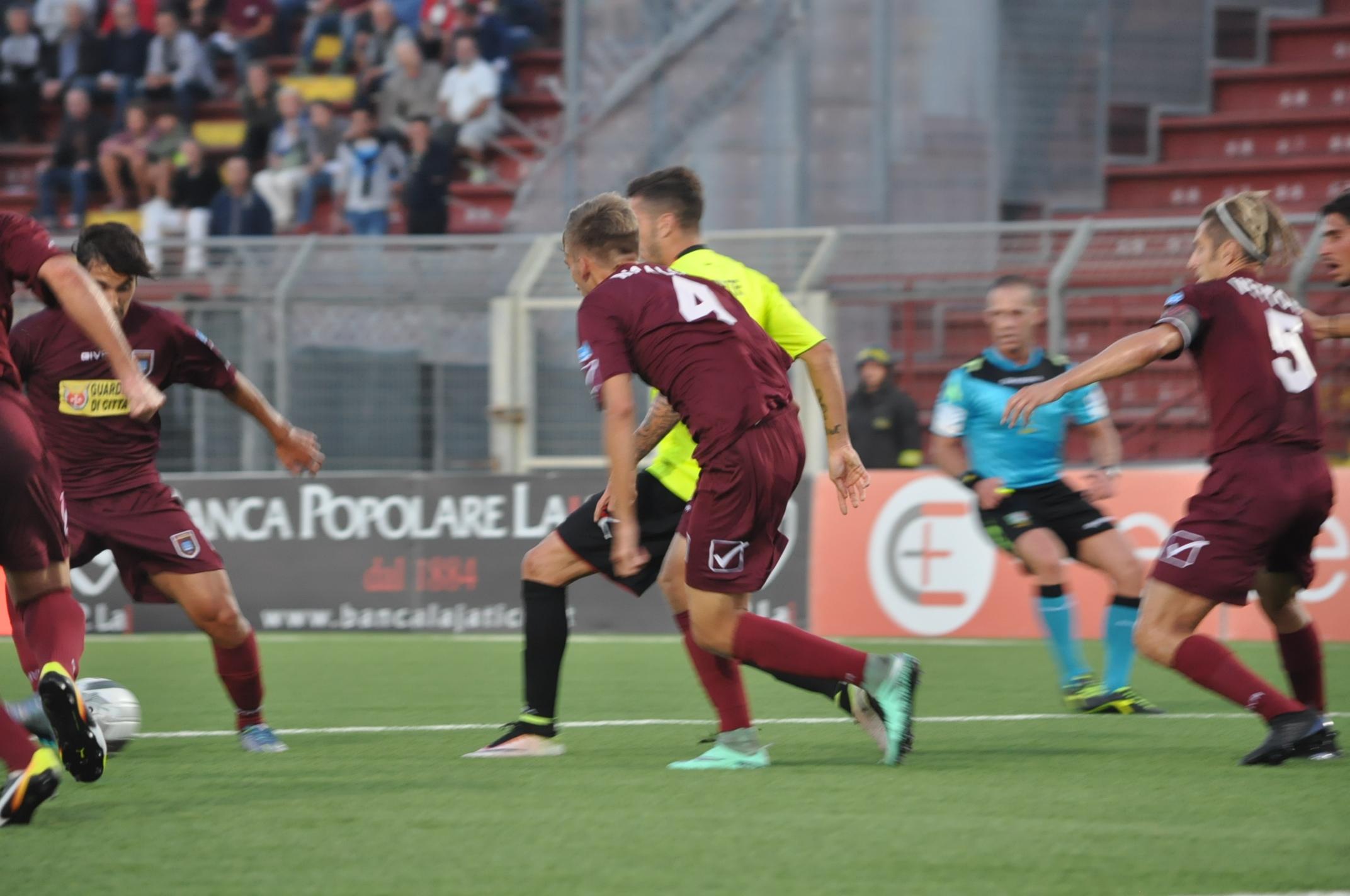 I padroni di casa passano in vantaggio al 17’ con l’ex Santini che trafigge Nobile con un diagonale dalla sinistra dopo essere entrato in area. Dopo solo due minuti c’è il raddoppio dello stesso Santini che entra in area, si accentra e batte a botta sicura. La Lucchese accorcia le distanze al 23’: cross dalla sinistra di Cecchini per Forte che si esibisce in un bel controllo aereo e insacca da due passi. Al 32’ Martinez trova il gol del pareggio ribadendo in rete una respinta corta di Lori su un tiro di Terrani e al 35’ la Lucchese passa incredibilmente in vantaggio con un colpo di testa di Forte in seguito ad un cross di Florio. Nella ripresa, la Lucchese deve sostituire Martinez per infortunio, entra De Feo e dopo solo due minuti segna con un tiro dal limite sugli sviluppi di un calcio d’angolo. Al 39’ Merlonghi, lanciato da Longobardi, salta il portiere e calcia in porta ma Risaliti salva sulla linea.