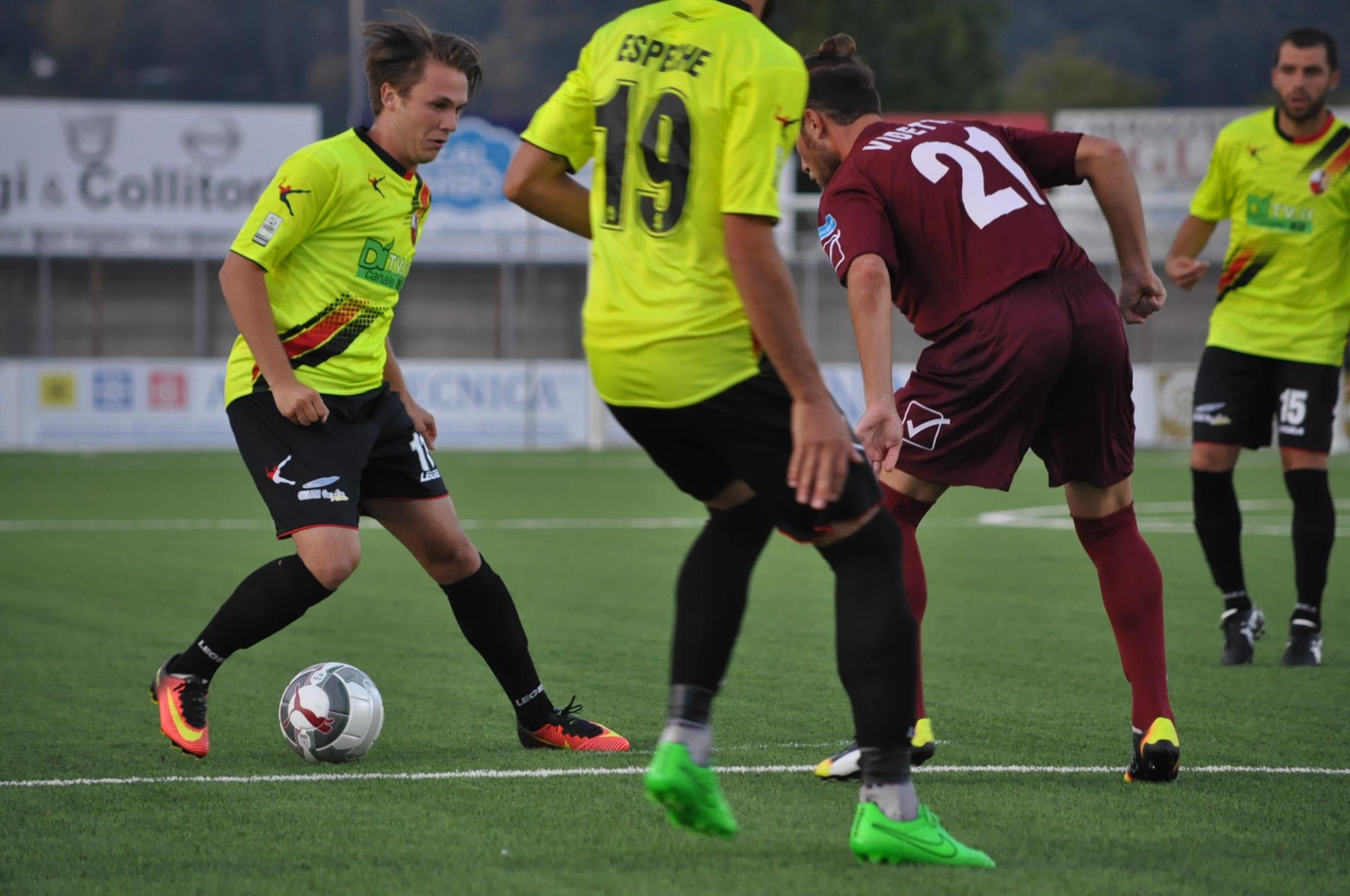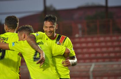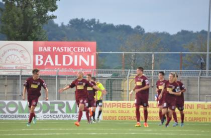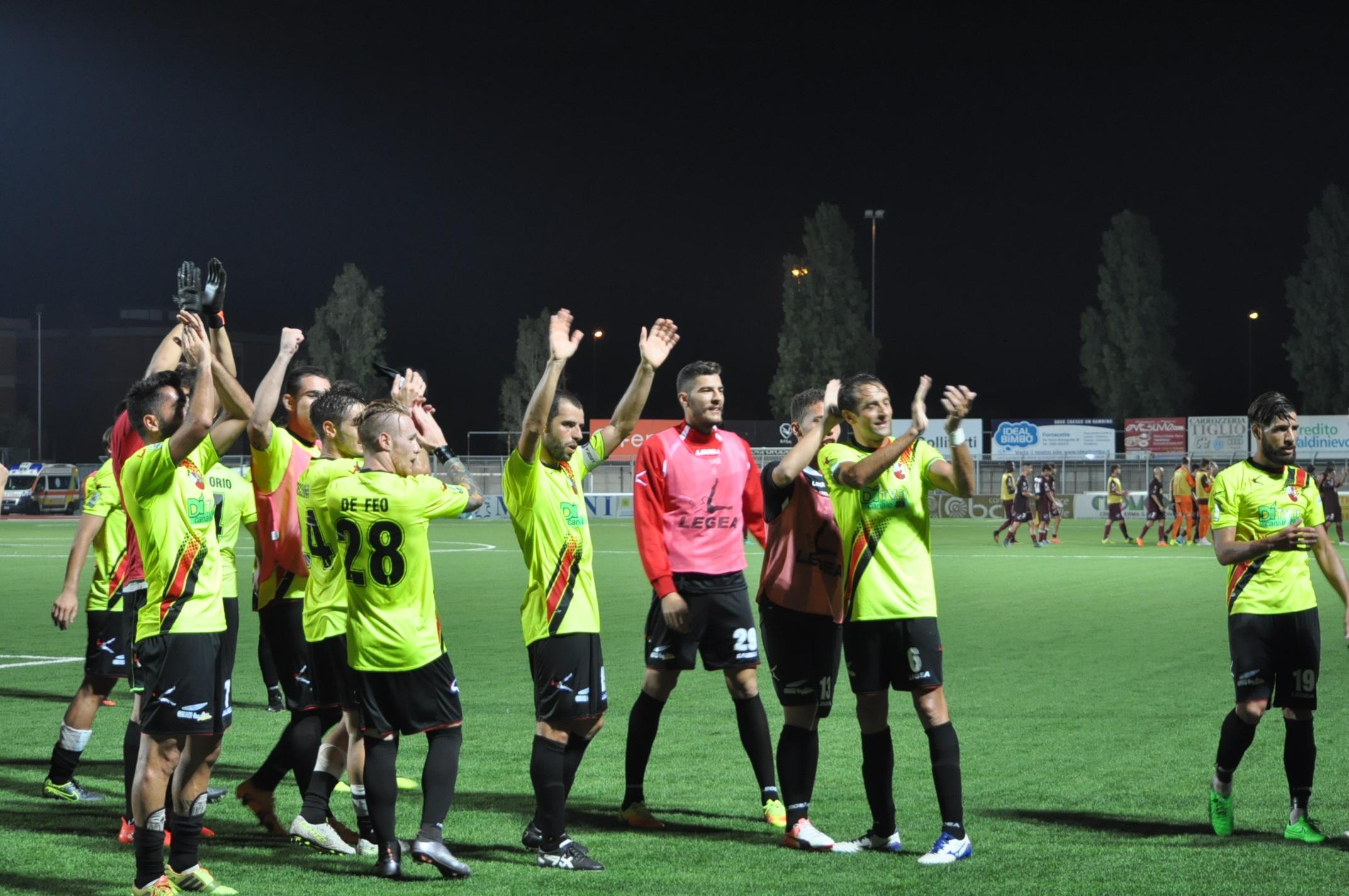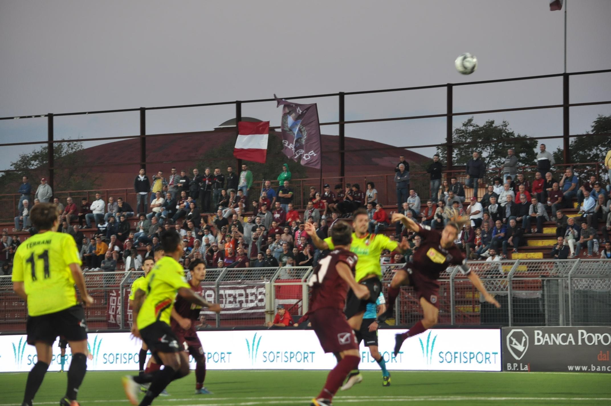I padroni di casa passano in vantaggio al 17’ con l’ex Santini che trafigge Nobile con un diagonale dalla sinistra dopo essere entrato in area. Dopo solo due minuti c’è il raddoppio dello stesso Santini che entra in area, si accentra e batte a botta sicura. La Lucchese accorcia le distanze al 23’: cross dalla sinistra di Cecchini per Forte che si esibisce in un bel controllo aereo e insacca da due passi. Al 32’ Martinez trova il gol del pareggio ribadendo in rete una respinta corta di Lori su un tiro di Terrani e al 35’ la Lucchese passa incredibilmente in vantaggio con un colpo di testa di Forte in seguito ad un cross di Florio. Nella ripresa, la Lucchese deve sostituire Martinez per infortunio, entra De Feo e dopo solo due minuti segna con un tiro dal limite sugli sviluppi di un calcio d’angolo. Al 39’ Merlonghi, lanciato da Longobardi, salta il portiere e calcia in porta ma Risaliti salva sulla linea.
