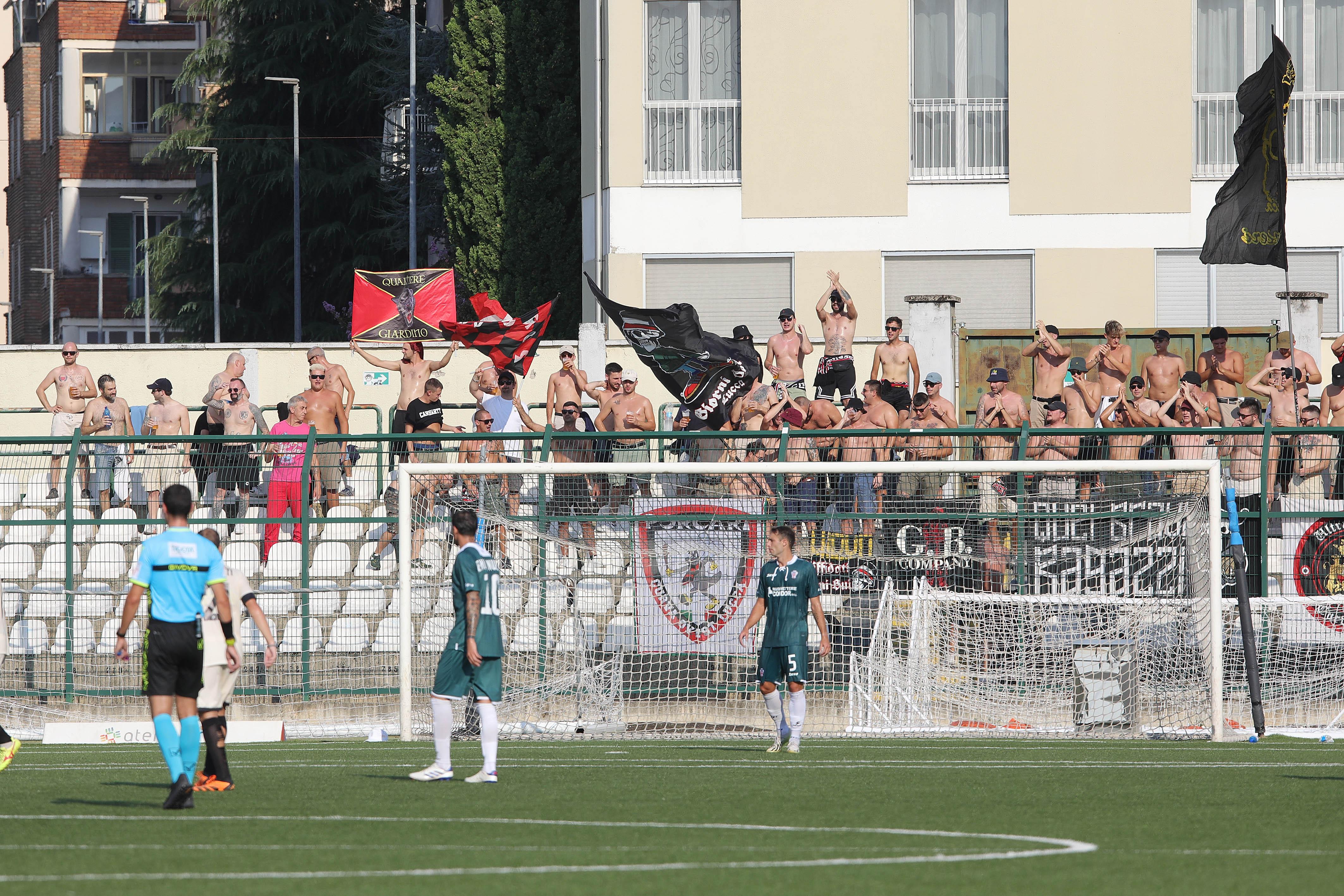 Eppure Mister Gorgone, senza Gucher, Quirini, Botrini, Tumbarello, De Maria, Magnaghi e persino, a sorpresa, l'ultimo arrivato Costantino, ha dovuto ricorrere a una formazione che definire di emergenza è solo un riguardo per chi è sceso in campo e ha comunque dato tutto ma proprio tutto quello che aveva. Basti pensare che in panchina c'erano solo sei giocatori, il più vecchio escluso Coletta, era un classe 2001 come Saporiti, gli altri tutti sotto i venti anni. I rossoneri, oggi con la seconda maglia bianca antico eche prima della gara sono andati a salutare gli oltre 100 tifosi giunti da Lucca, partono con il piglio giusto, ma a rendersi pericolosi sono i padroni di casa al 16' con Comi la cui conclusione è respinta da un difensore. Tre minuti dopo è Biagetti di testa a costringere Palmisani a rifugiarsi in angolo. Il primo tiro, scagliato a lato, dei rossoneri è di Fedato: siamo al 22', un secondo prima della pausa che l'arbitro concede ai giocatori per dissetarsi. Alla ripresa, sempre Fedato prova un pallonetto dal termine ma il tiro è strozzato: nessun problema per Rizzo. Ma è sempre Fedato che sguscia sulla sinistra al 29' e mette un pallone invitante al centro: nessuno de compagni è pronto e allora Visconti ci prova da fuori, sulla respinta di Rizzo, Fazzi spara alto dall'altezza del dischetto. In pieno recupero Palmisani, convincente il suo esordio, si supera su una punizione dal limite di Comi. E' zero a zero al duplice fischio.