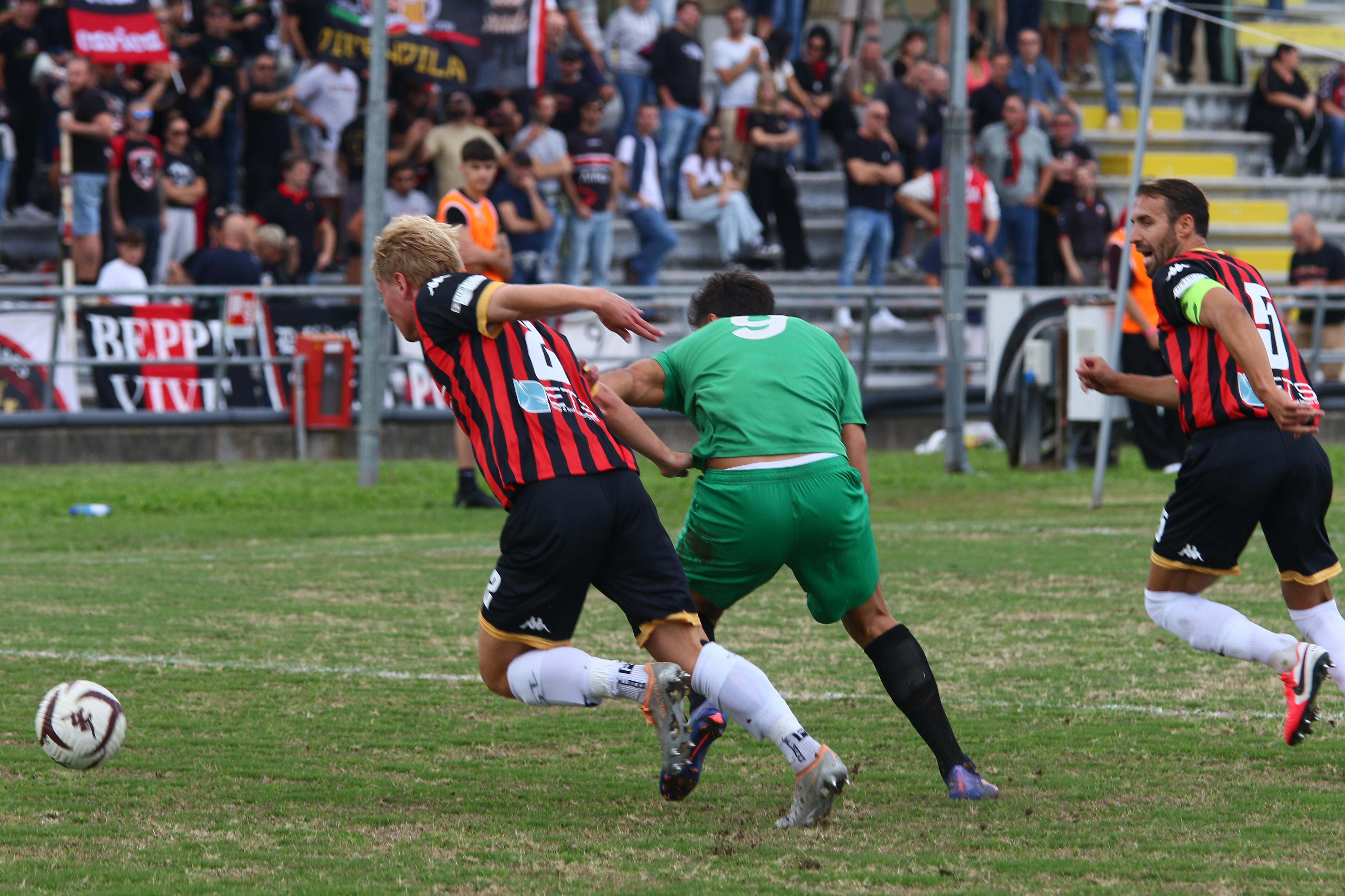 Decidono i gol di Russo e Riad nel primo tempo. Nella ripresa gli ospiti accorciano dopo aver sbagliato anche un rigore, ma la qualificazione agli ottavi viene centrata: nel prossimo turno i rossoneri troveranno il Perignano. Commento, tabellino e foto