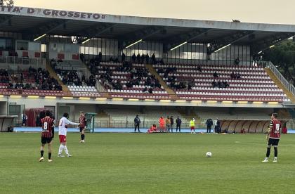 Sul terreno del Grosseto, i rossoneri recuperano a tempo scaduto una gara che sembrava ormai persa con il Belvedere che passato in vantaggio è stato recuperato solo a tempo scaduto e dopo che la formazione di mister Pirozzi aveva sbagliato anche un rigore. Un pari che lascia a desiderare come gioco espresso, per alcune lacune difensive e certi limiti offensivi, ma che lascia immutata la classifica al vertice visto il pari casalingo della Zenith. Mister Pirozzi sorprende un po' tutti e schiera una formazione con due terminali offensivi, (Piazze e Camilli) con Palma trequartista, ma la notizia del giorno è il recupero finalmente tra i titolari di Picchi. Caggianese e Colferai (il secondo un po' acciaccato) sono in tribuna.