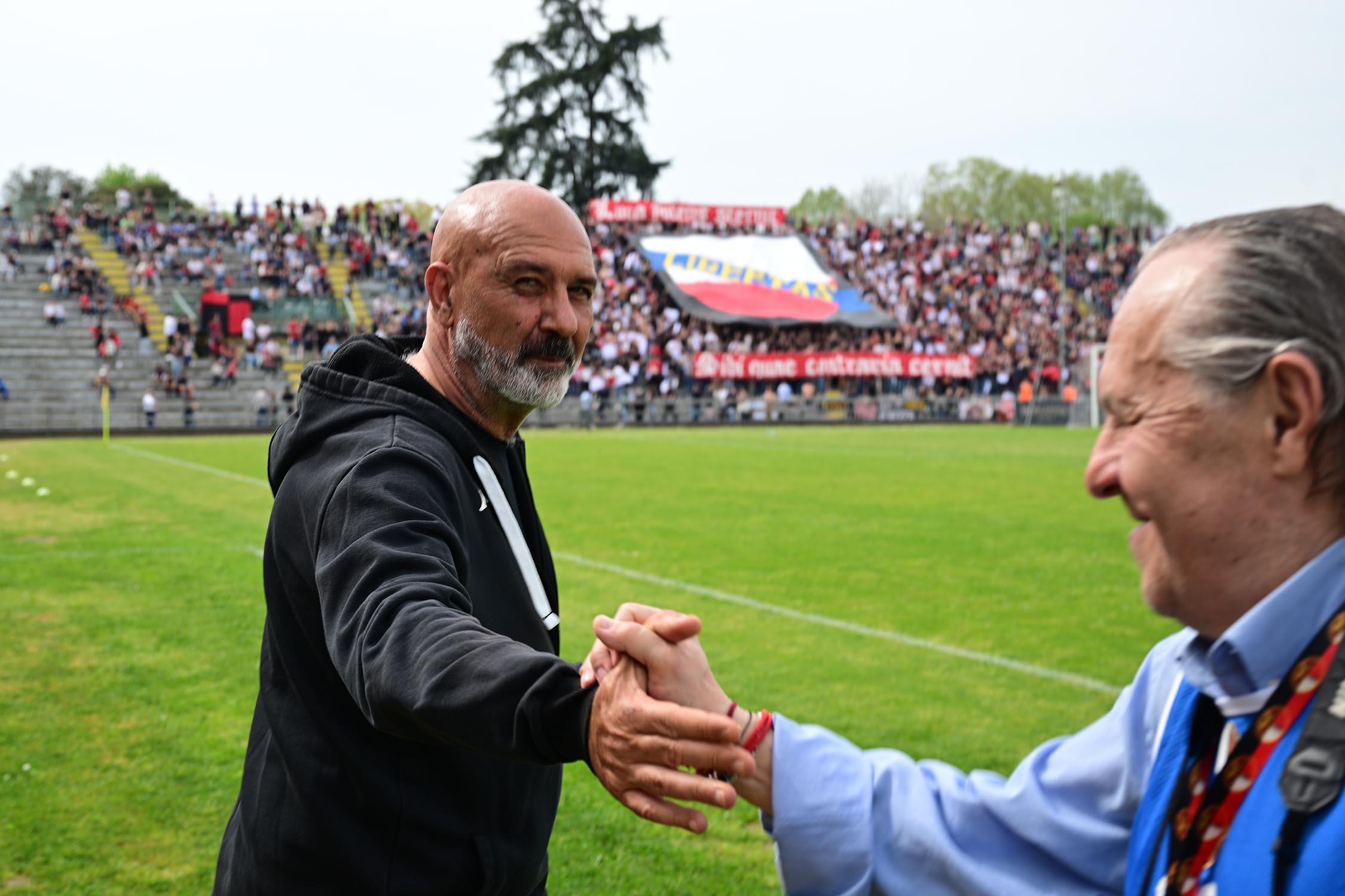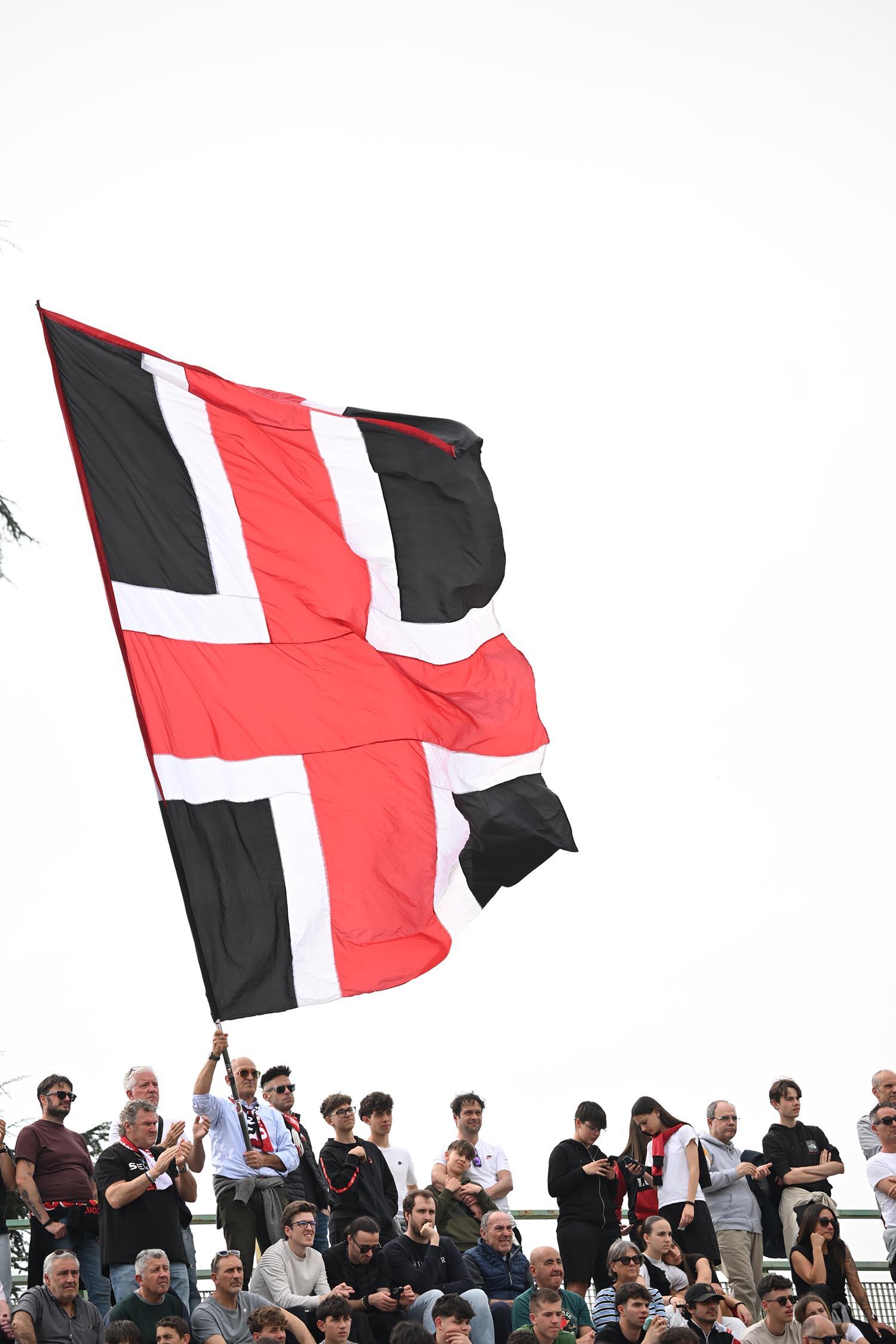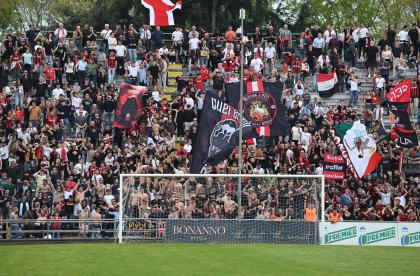Mister Pirozzi dà fiducia a coloro che ha maggiormente impiegato, a partire dai due esterni di difesa Xeka e Lorenzini, a centrocampo Del Rosso è preferito a Russo, mentre in attacco con Riad ancora non al meglio la maglia da titolare resta sulle spalle di Piazze. In un catino carico di entusiasmo e di 3500 persone, numeri impressionanti per il contesto, i rossoneri partono bene e vanno in gol con Piazze al 2': per il guardalinee è in fuorigioco. Dubbio. Ma i rossoneri insistono e mettono subito alle corde gli ospiti: al 3' Piazze conclude fuori di poco, al 6' Del Rosso impegna Rizzato, la pressione è continua. Al 12' ci prova Picchi da fuori, palla che va sopra la traversa. E' l'anticipo del vantaggio: Lorenzini viene steso in area: calcio di rigore e cartellino per Regoli. Dal dischetto trasforma Fedato, con freddezza che corre verso una Curva Ovest che ruggisce. Siamo al 13'. La reazione degli ospiti è affidata a un tiro di Remedi, con Milan che respinge.