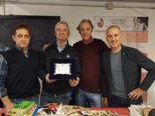 Grande partecipazione questa mattina al Museo rossonero di Lucca United in occasione della 112esima riunione nazionale di Unioncollezionisti calcio. Il presidente di Unioncollezionisti calcio 1979, Gianni Lavarello, ci ha tenuto a consegnare nelle mani di Stefano Galligani la targa di ringraziamento a Lucca United per aver ospitato nuovamente l'evento riservato agli appassionati di memorabilia sportiva.